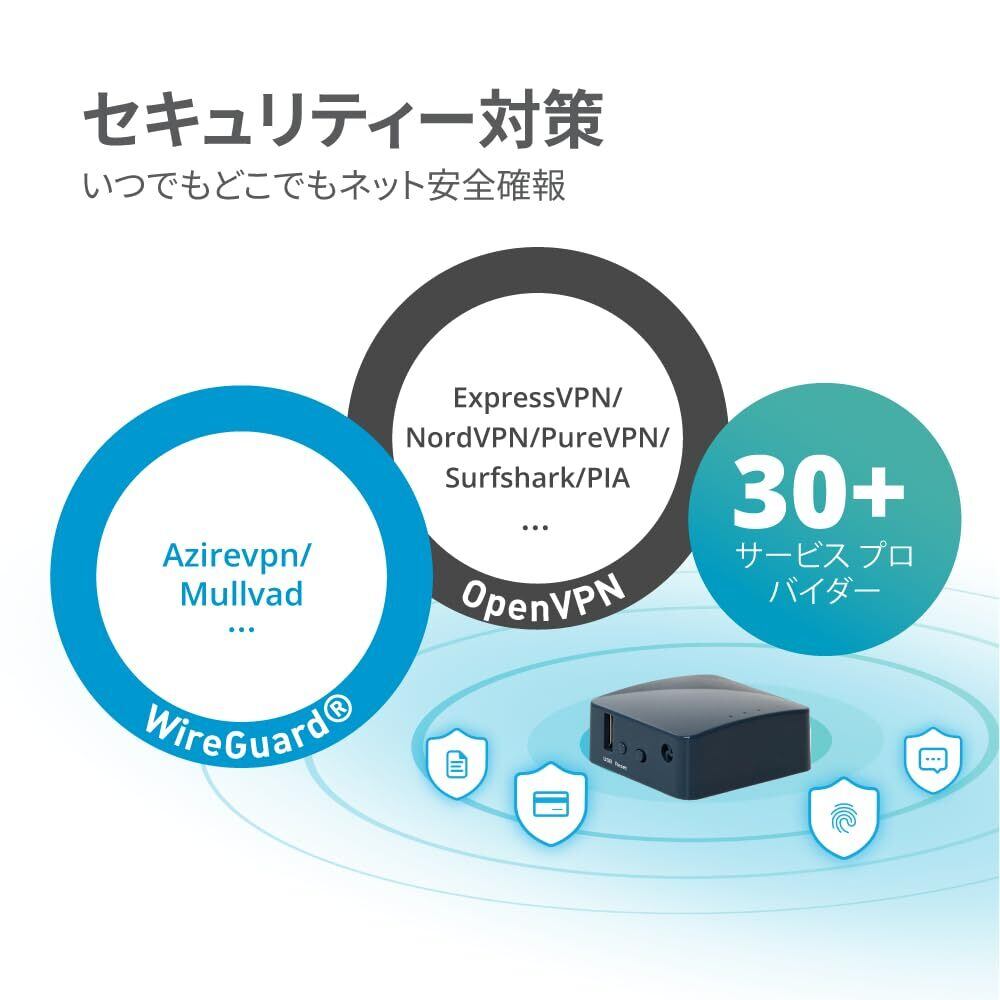 【セキュリティとプライバシー】OpenVPN、WireGuardクライアントが30以上のVPNサービスプロバイダーに対応、複数のプライベートVPNサーバーも设定可能。