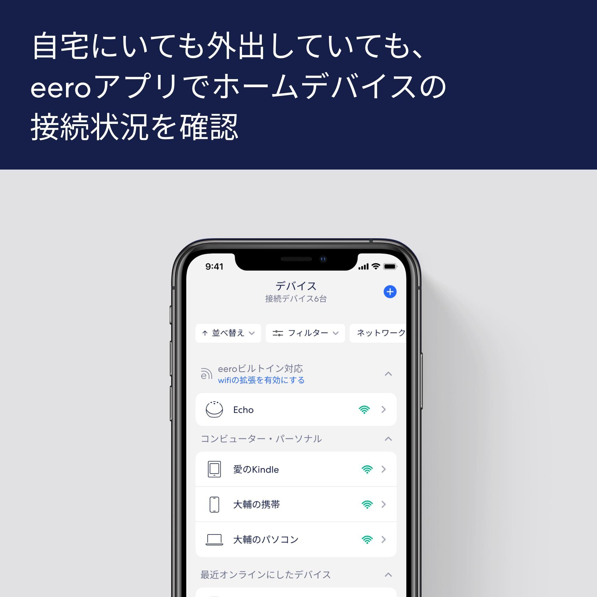 【 Echoデバイスでwifi範囲を拡張】eeroビルトイン機能を使えば、対応する Echoデバイス(別売)が、wifiエクステンダーに。ネットワークの届きづらいデッドスポットやバッファリングを解消。