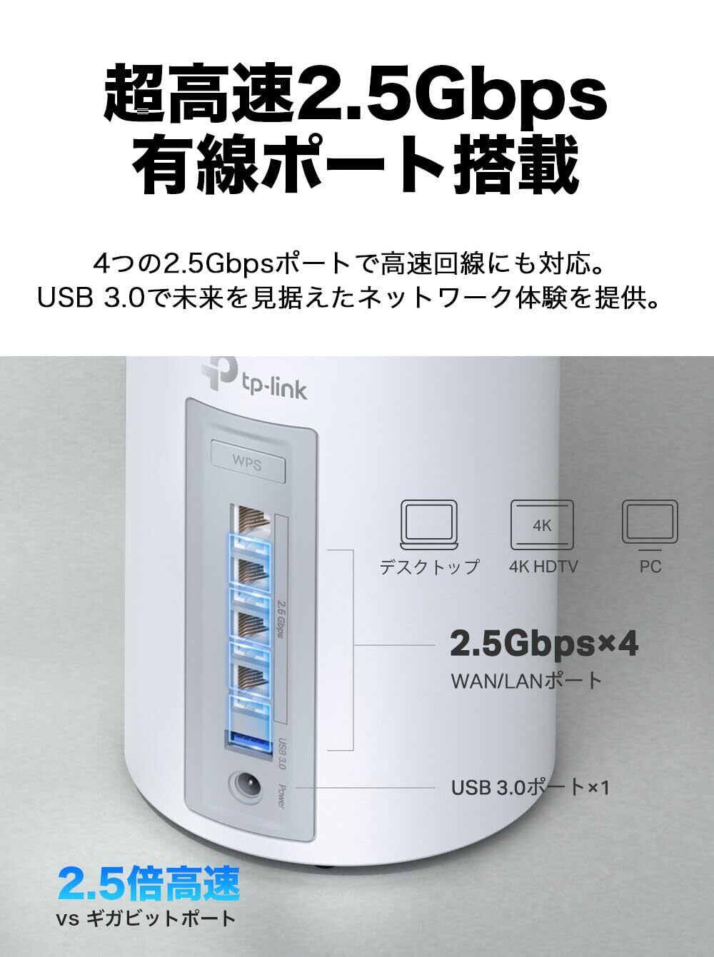 [2.5Gbpsポート] 2.5Gbps対応のWAN/LANポート×4を搭載し、柔軟な有線接続を実現。