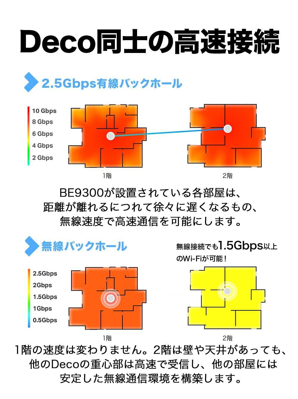 TP-Link メッシュwifi ルーター BE9300 | 2.5Gbpsイーサネット | 5760Mbps (6GHz) + 4320Mbps (5GHz) + 688Mbps (2.4GHz) | 最大wifi範囲278m² | 同時接続台数200台 | Deco BE9300 1ユニット