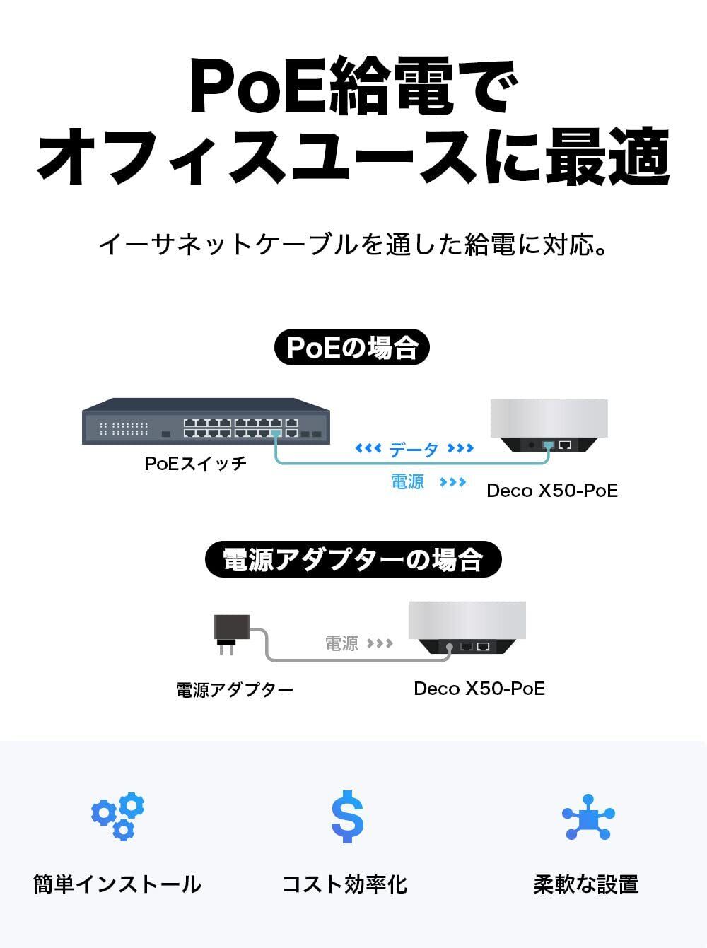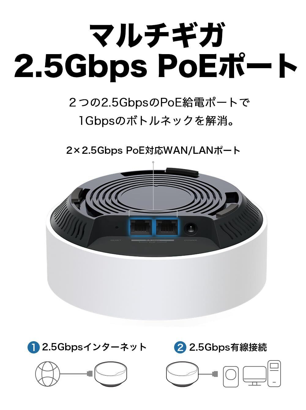 【特徴】プロの現場にも対応したDecoが登場! PoE給電に対応した2.5Gbps PoEポートを搭載したAX3000規格。