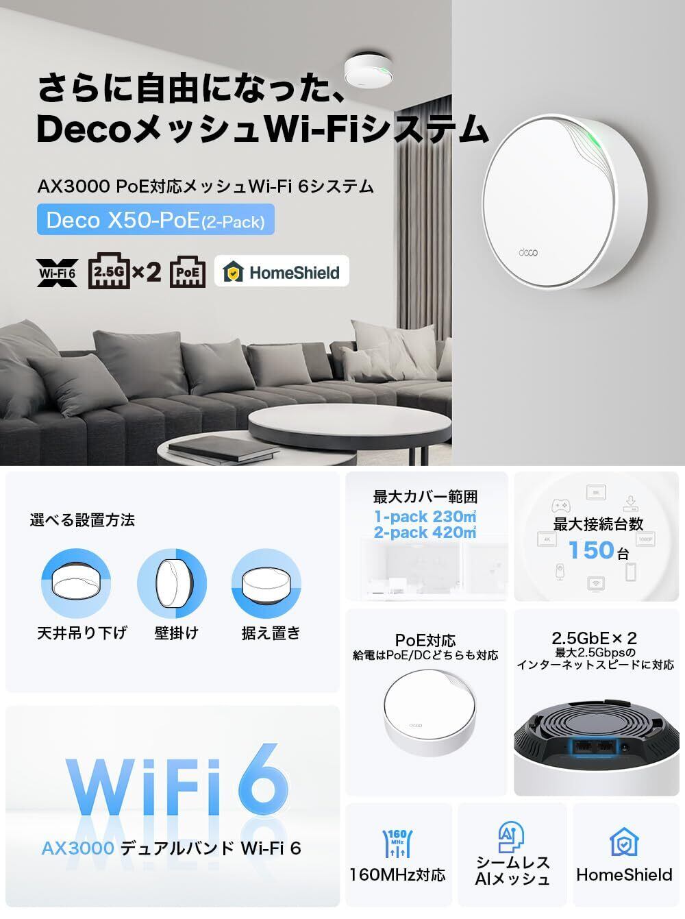 TP-Link Wi-Fi 6 ルーター wifi中継 ビジネス 無線LANルーター 商用アクセスポイント スマートホーム 【2.5Gbps WAN/LAN PoEポート搭載】 AX3000 Deco X50-PoE 2ユニット