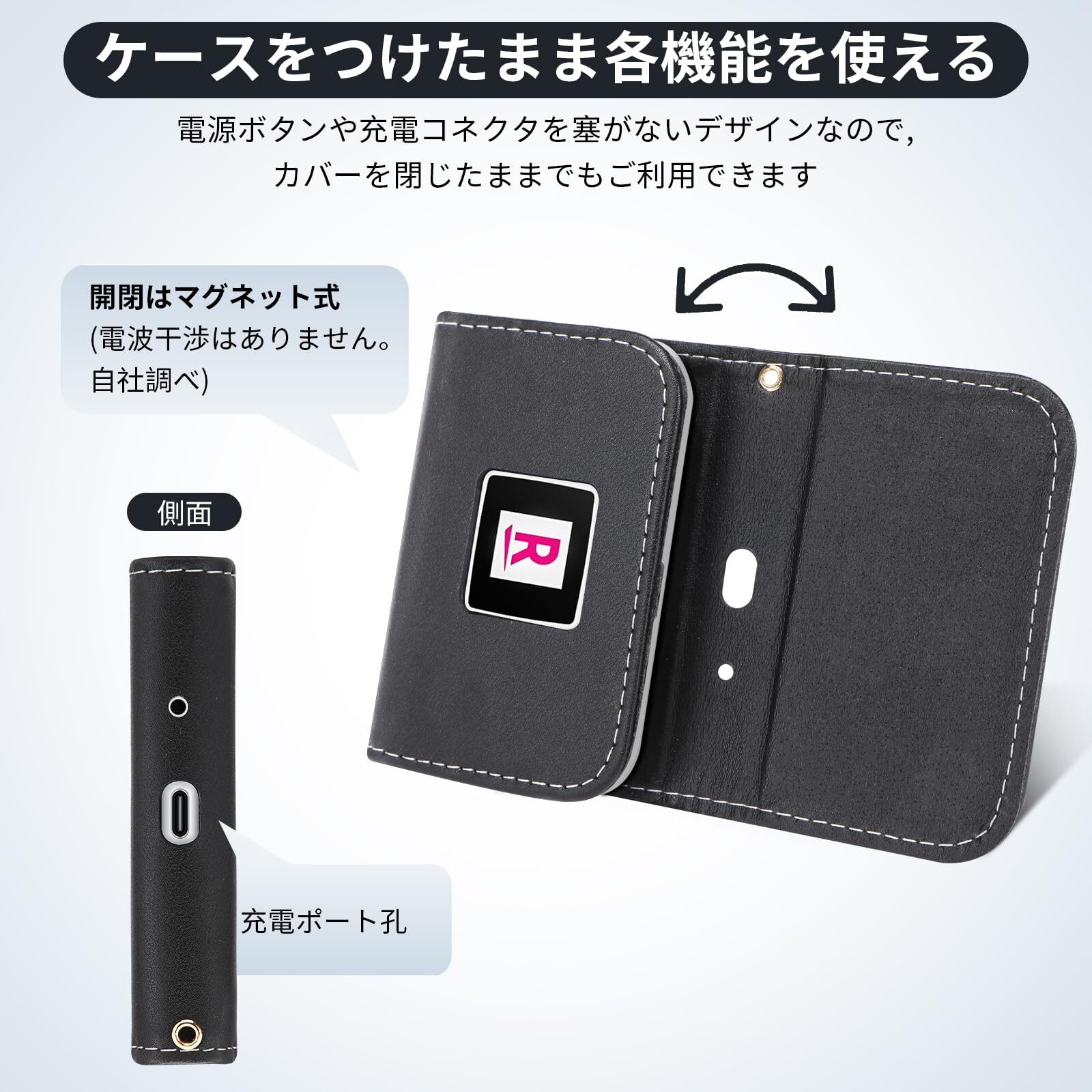 Rakuten WiFi Pocket Platinum専用 モバイルルーター ケース カバー あり フリップタイプ マグネット式 全面保護 耐衝撃 放熱性 (Black)