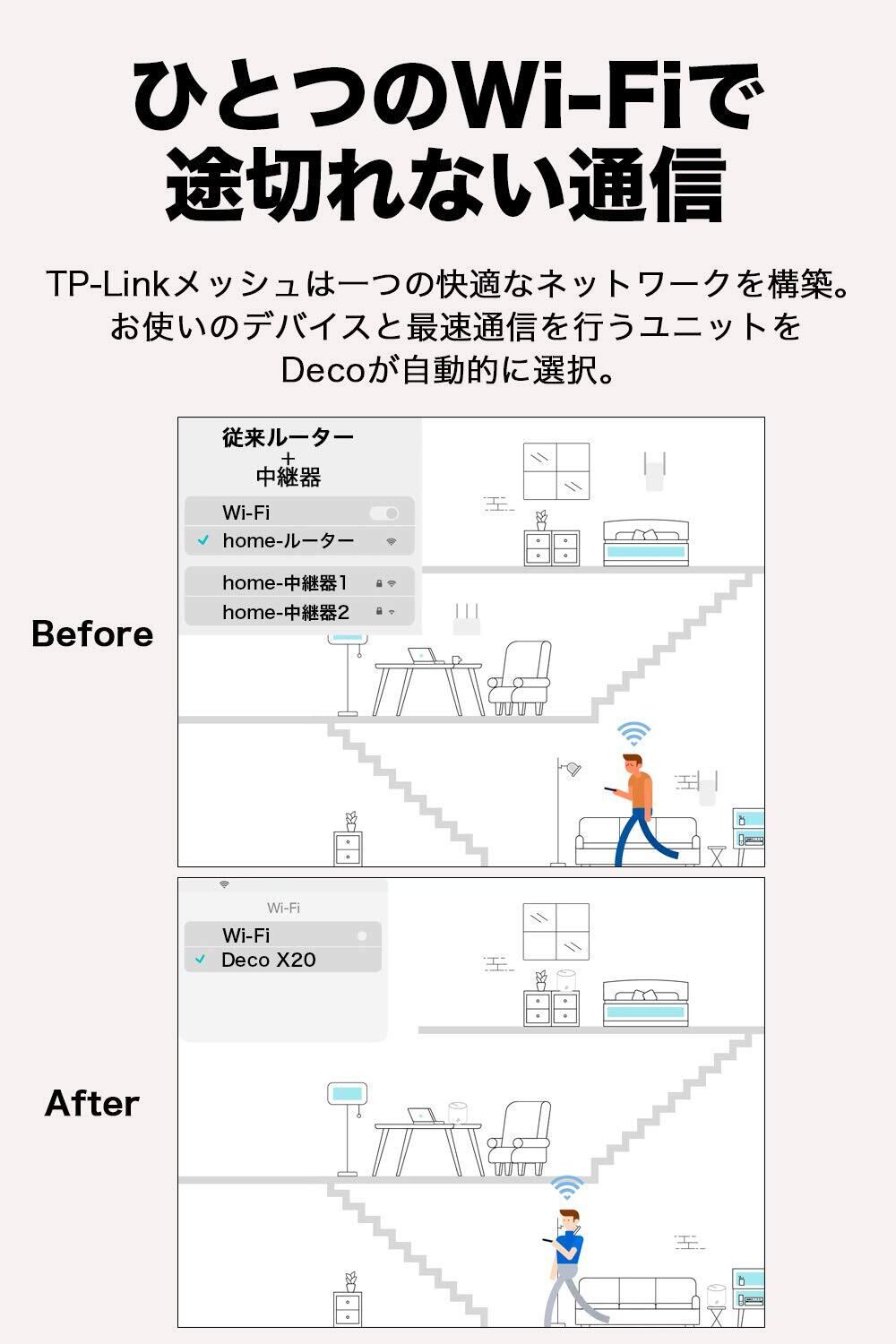 TP-Link メッシュ WiFi 6 ルーター 【 PS5 / ipad/Nintendo Switch/iPhone シリーズ メーカー動作確認済み 】 Alexa 認定製品 スマートテレビ 対応 メッシュWi-Fi無線LANルーター スマートホーム AX1800 (1201+574Mbps) Deco X20 1ユニット