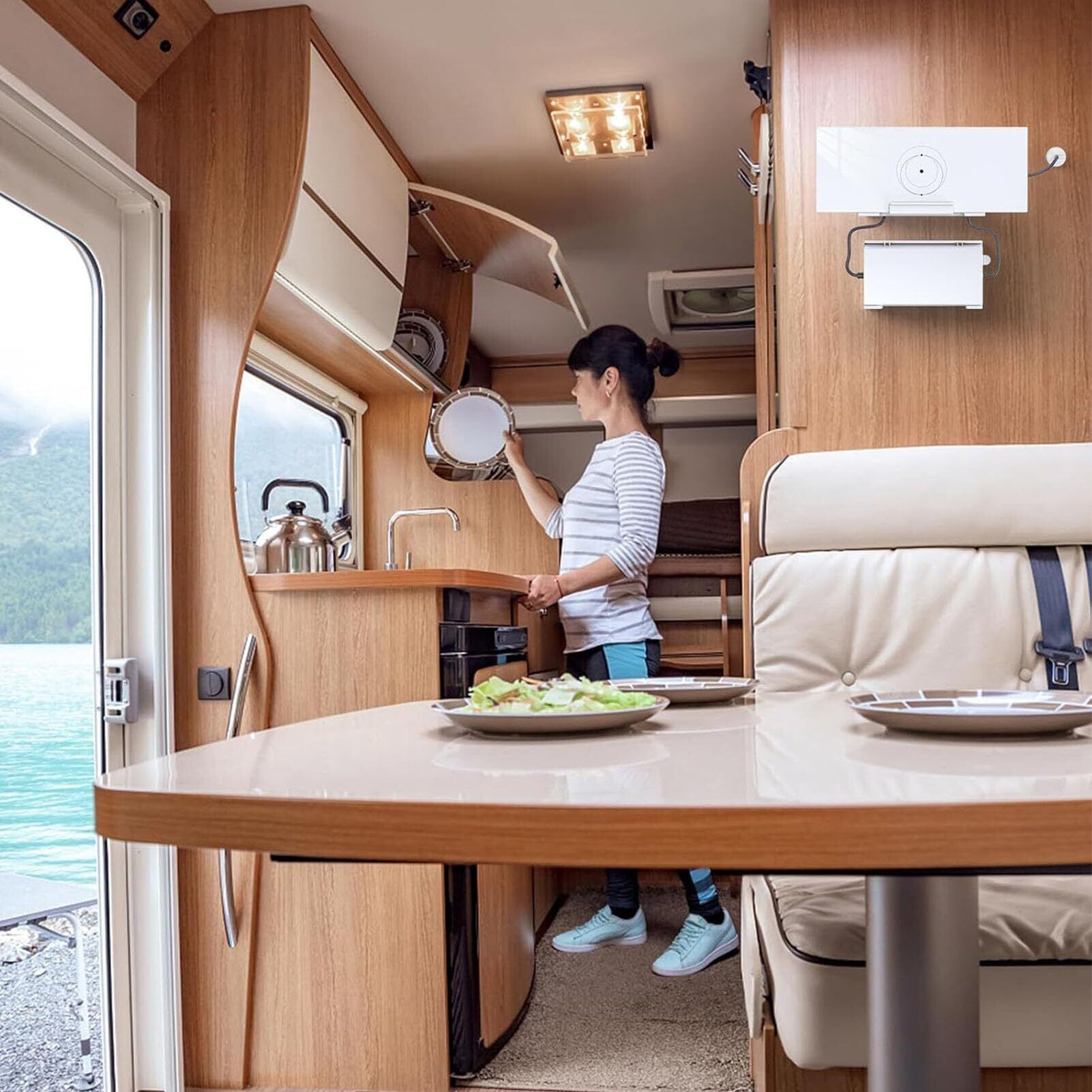 統合設計: ルーターと電源イーサネット アダプターを 1 つのコンパクトなユニットにシームレスに組み合わせ、RV、リビングルーム、カフェ、オフィス、ボート、その他の環境への設置に最適です。