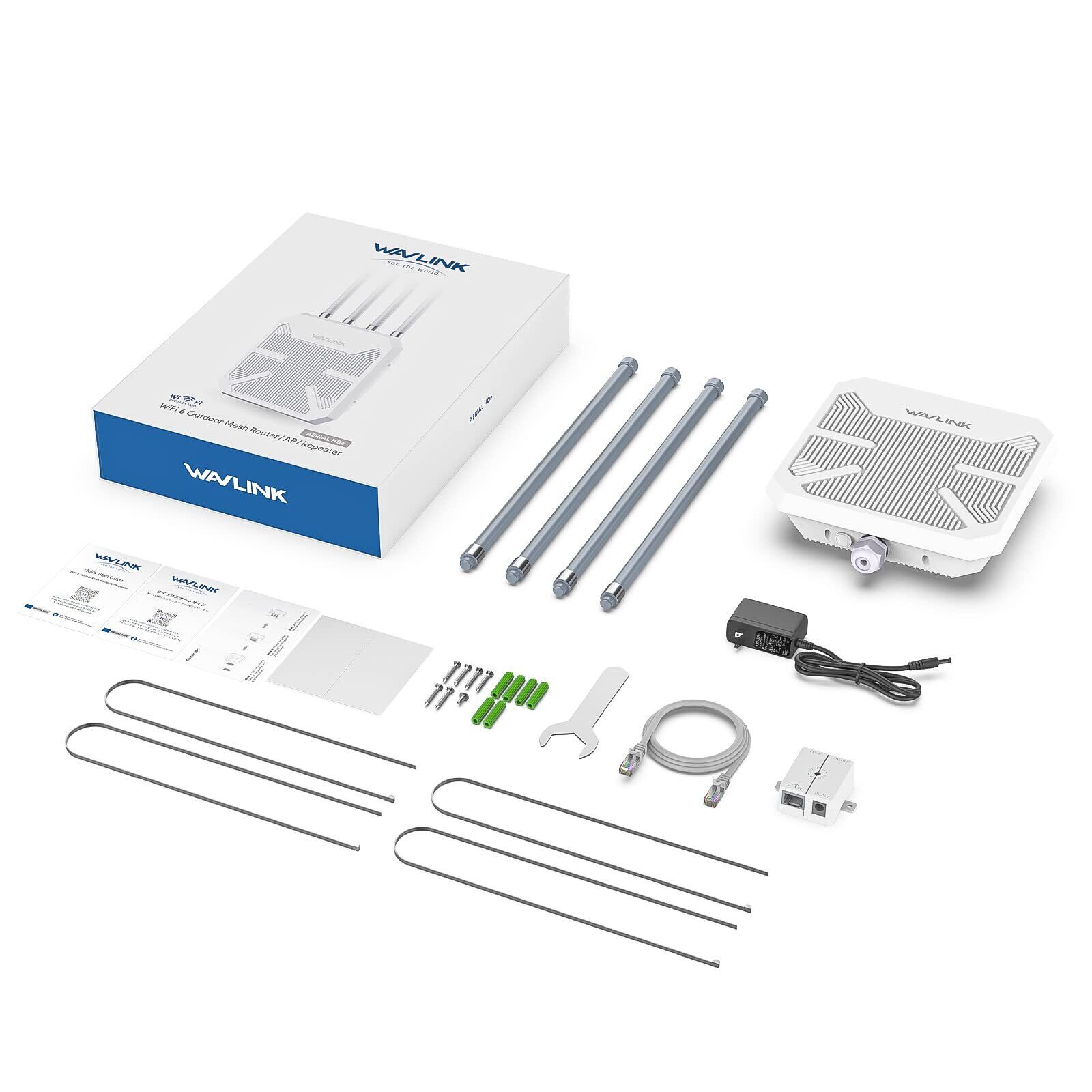WAVLINK WiFi6 屋外メッシュルーター/AP/中継器、デュアルバンド2.4G+5G AX1800M PoE付き長距離屋外WiFiメッシュエクステンダー/4x8dBiハイゲインアンテナ/IP67耐候性エンクロージャー/シグナルブースターアンプ