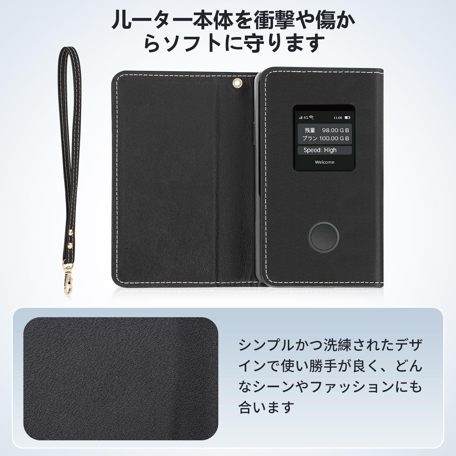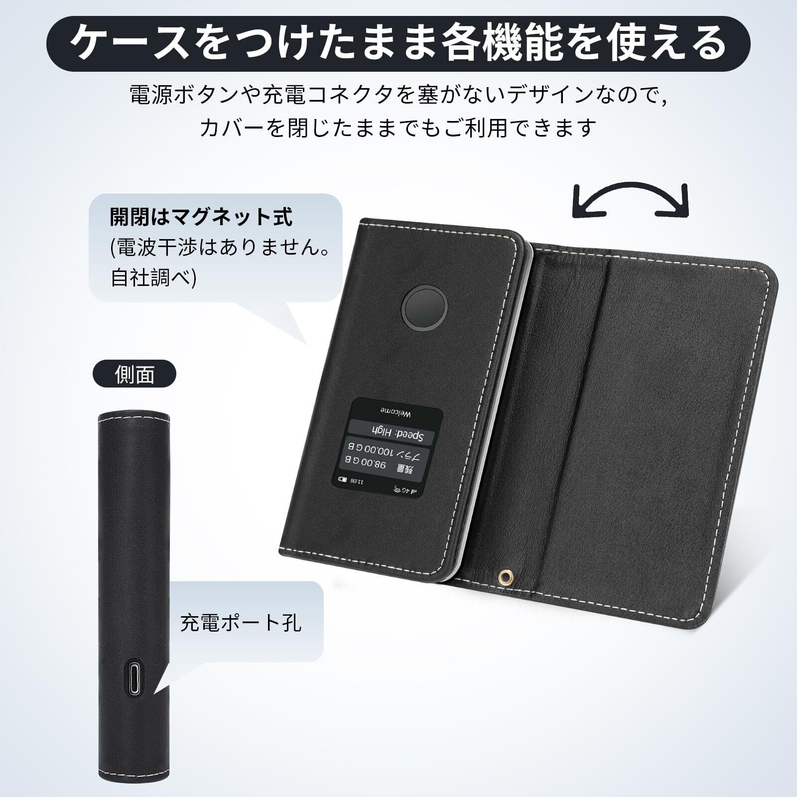 【リチャージWiFi】 T8/T8SL専用 モバイルルーター ケース カバー あり フリップタイプ マグネット式 全面保護 耐衝撃 放熱性(ブラック) (BLACK)