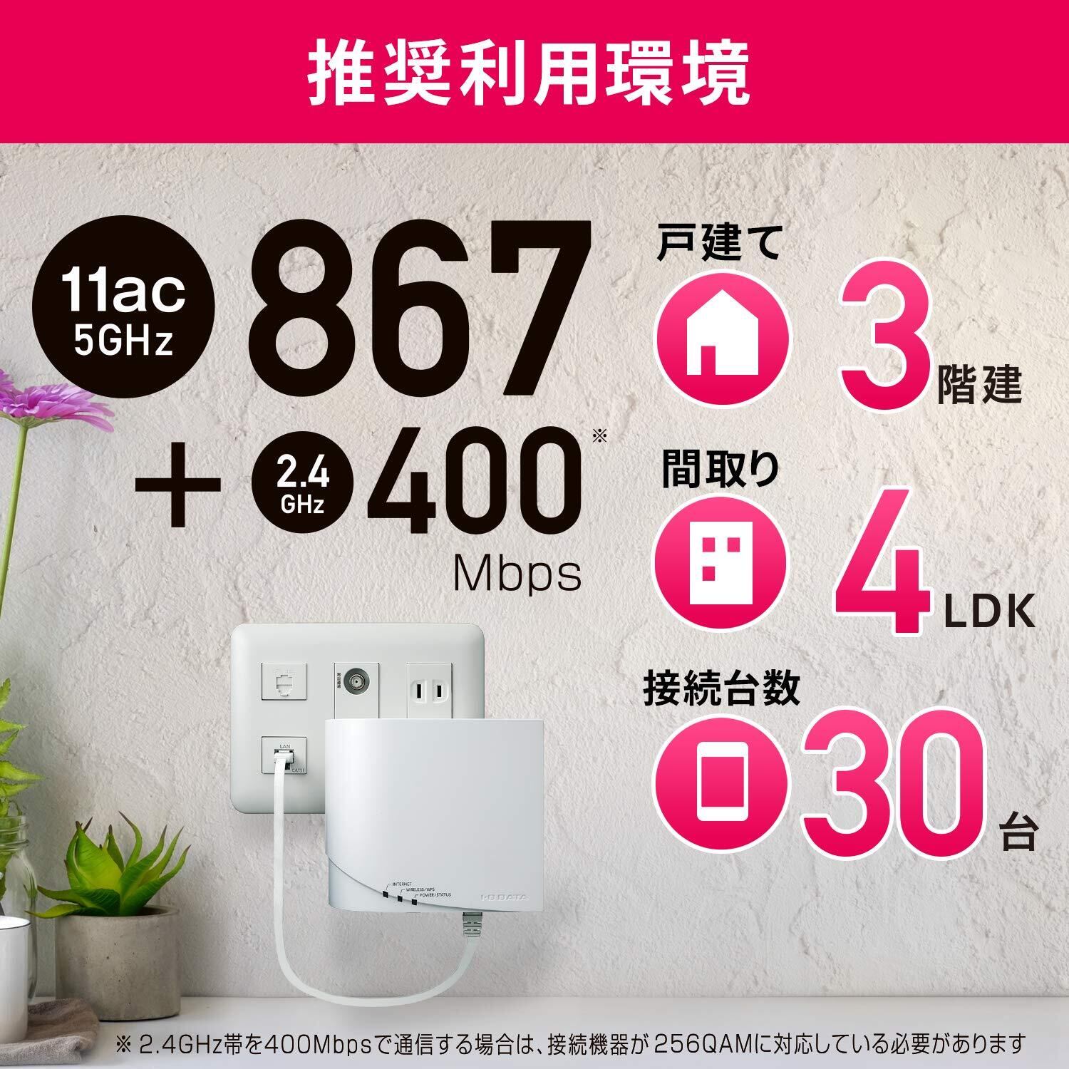 アイ・オー・データ WiFi 無線LAN ルーター 11ac Wi-Fi 867+400Mbps 子機1台 コンセント直付け IPv6 3階建/4LDK/30台 日本メーカー WN-DX1300GNEX