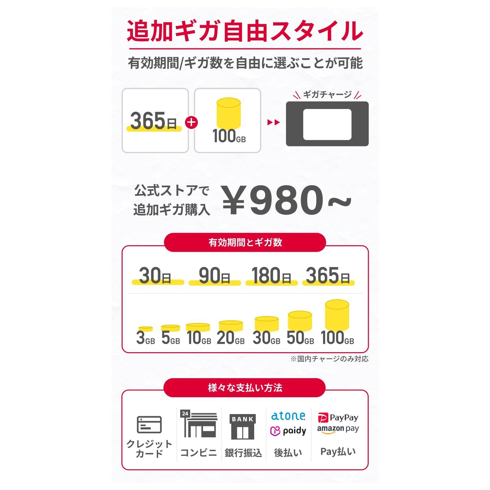 【完全買い切り型】契約・返却不要、月額料金なし、追加ギガ(国内)のリチャージも対応