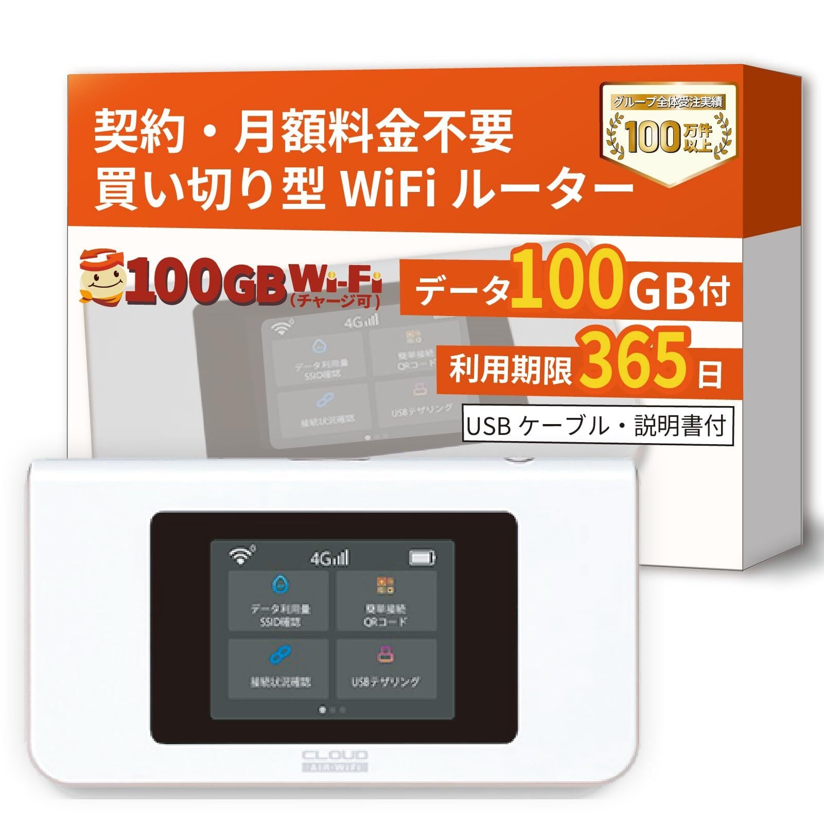 【100GB-WiFi(チャージ可)】リユース品 データ付WiFiルーター 日本国内専用 100GB365日間利用可能 365日 CLOUD AIR-WiFi AIR-1 リチャージ可能 WiFi 契約返却無し 月額費用無し 追加データチャージ機能付き モバイルWiFiルーター 国内 キャンプ対応 車で使える