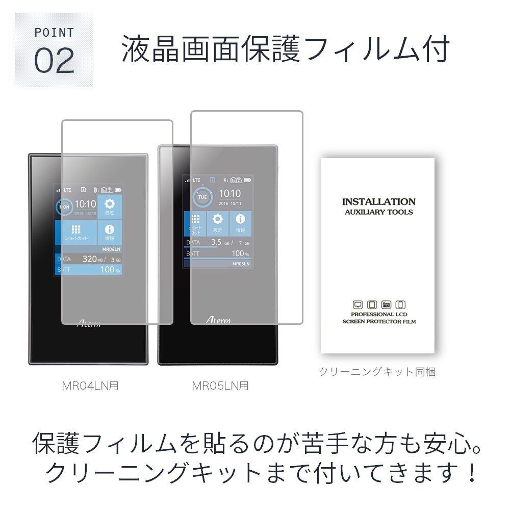 LOE(ロエ) Aterm MR05LN ケース (MR04LN 対応) モバイルルーター 保護フィルム 付 (ブラック)