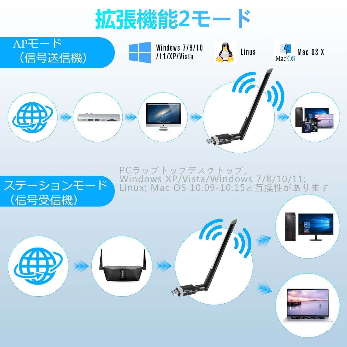 WiFi 無線LAN 子機 Sungale 1300Mbps 無線lanアダプタ USB3.0 WIFIアダプター 5dBi 高速通信 デュアルバンド 2.4Ghz/5Ghz 802.11AC Windows11/10 / 8.1/8/7/ XP/Vista/Mac OS X対応 PC/Desktop/Laptop