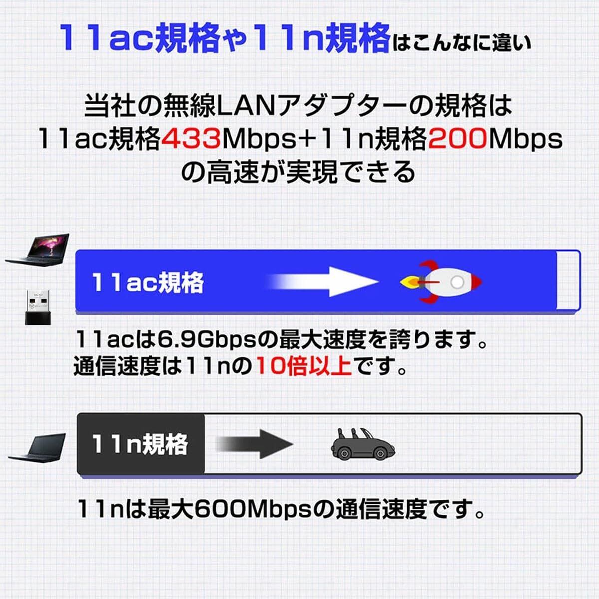 TOKAIZ 無線LAN WiFi 子機 Wi-Fi5 AC対応 無線LANアダプター AC600 2.4GHz 5GHz 433Mbps + 200Mbps 超小型 usb無線アダプター Windows/Mac OS 対応