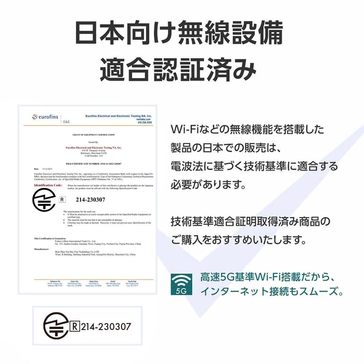 日本向け無線設備適合認証済みで、 高速5GWi-Fi搭載だから、インターネット接続もスムーズに