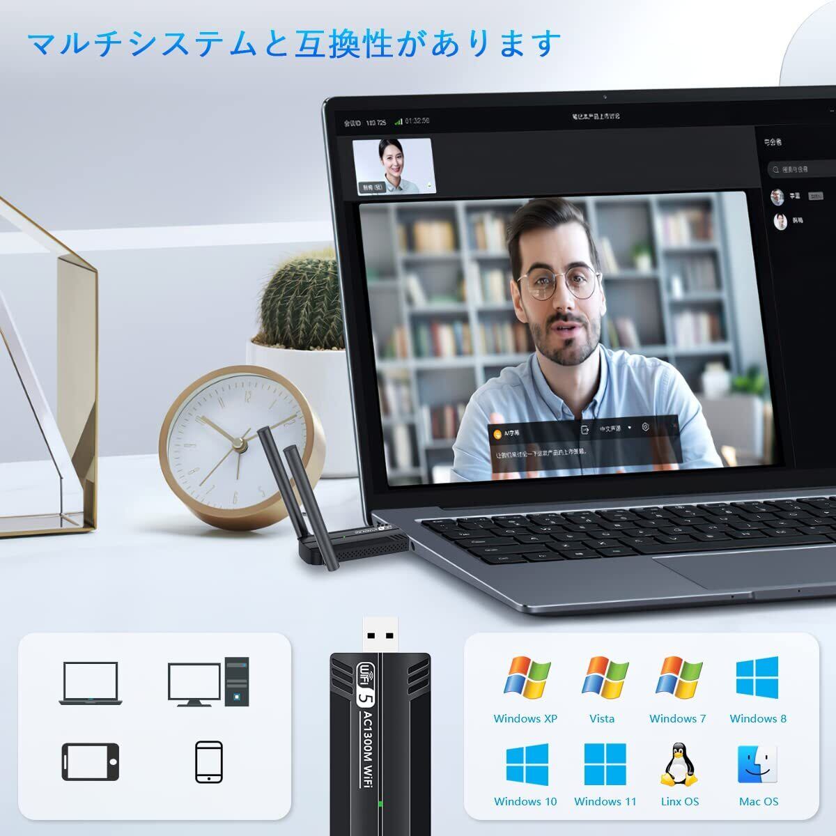 【AC1300Mpbs高速USBWiFiアダプター】USB WiFiアダプターは、家全体に長距離で遅延のない接続を提供します。PCまたはラップトップを802.11ac標準にアップグレードします。これは、ワイヤレスWi-Fiアダプターの速度の3倍の速度です。デバイスを高速でインターネットサーフィンできるようにします。