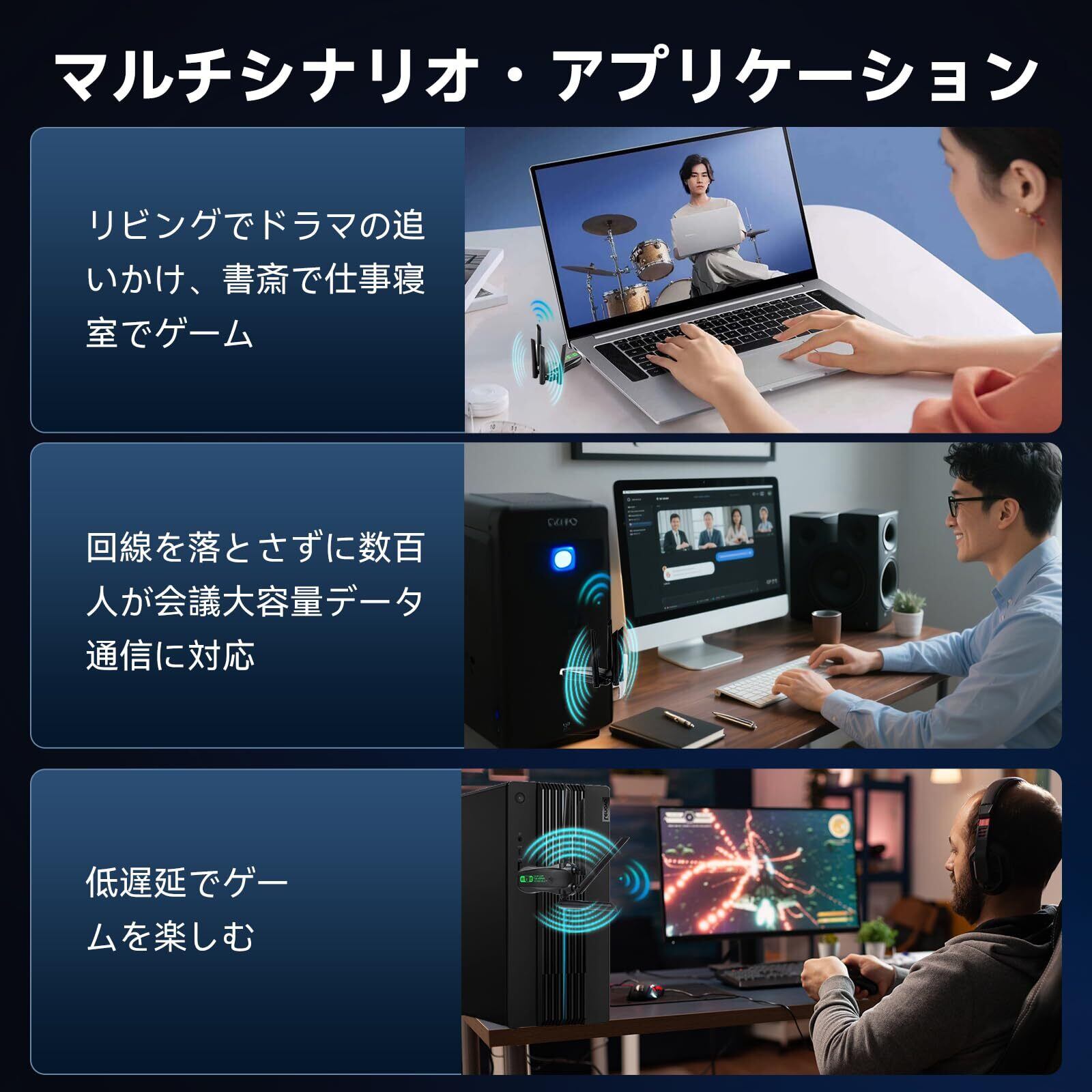 【5dBi 外部の強力なアンテナ】高ゲインの長距離5DBIデュアルバンドアンテナネットワークカードは、信号が弱い場合でも接続するのに役立ちます。無線LANの伝送性能を向上させ、各機器の安定した高速wifi接続を実現し、デスクトップPC用の理想的なUSB wifiアダプター。