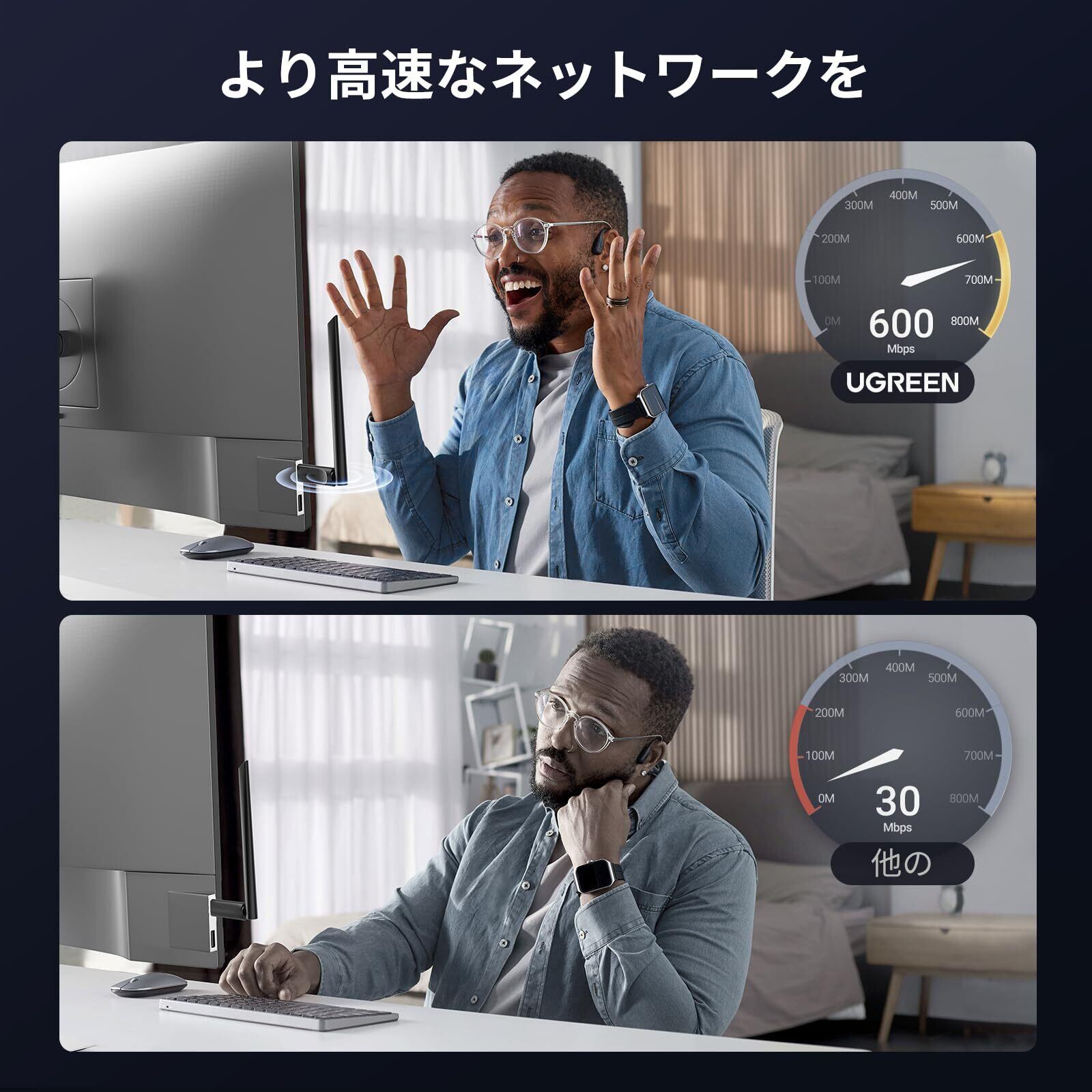 ◉【圧倒的通信速度!886Mbps超高速転送】UGREEN 無線LAN 子機はWi-Fi 6に対応し、デュアルバンドWi-Fiにより、環境に応じて5GHz(600Mbps)・2.4GHz(287Mbps)でWi-Fiルーターにアクセス。本商品は、AX900及び11ac/11axに対応した無線LAN子機で、遅延や信号干渉を最小限に抑えた高速で安定した接続が実現します。