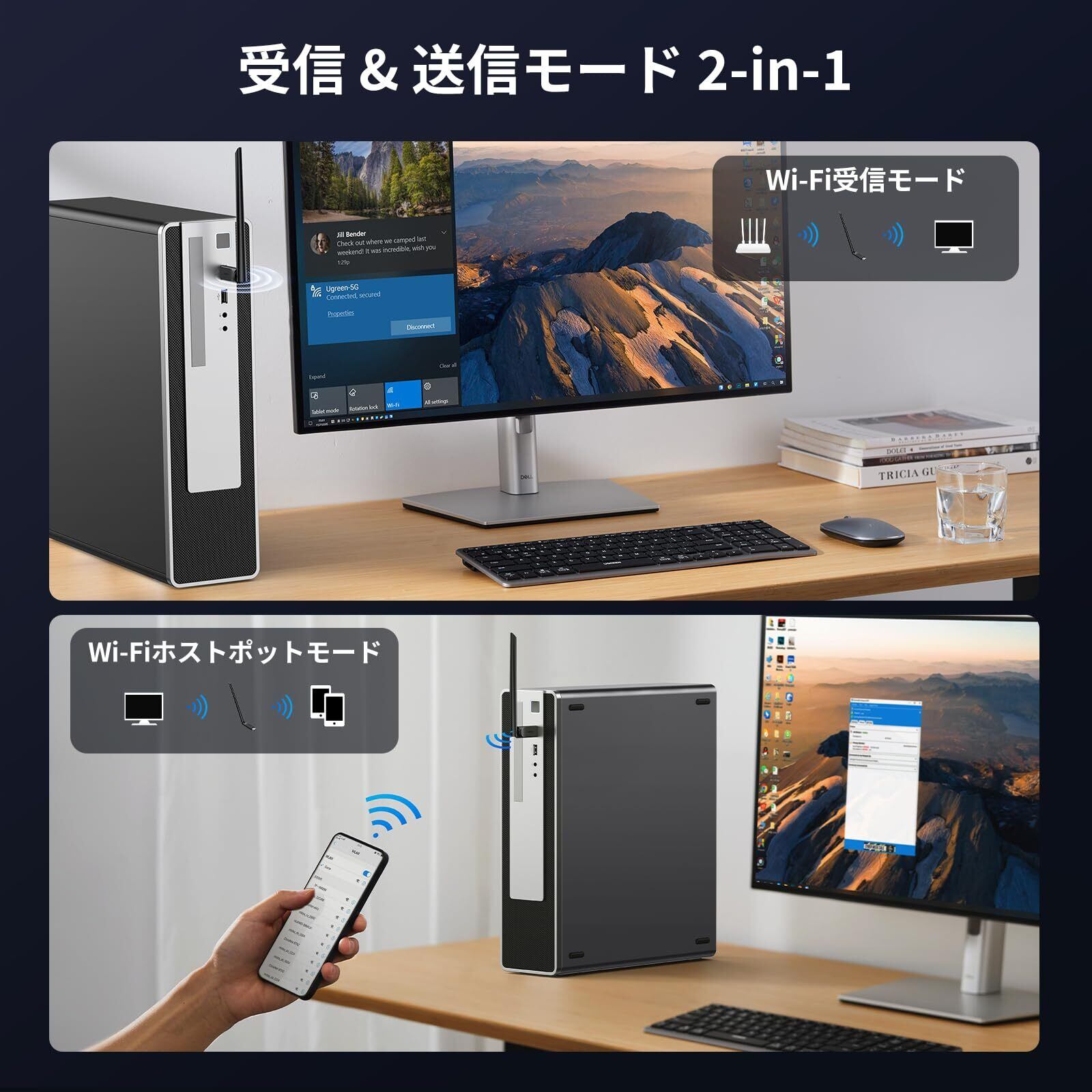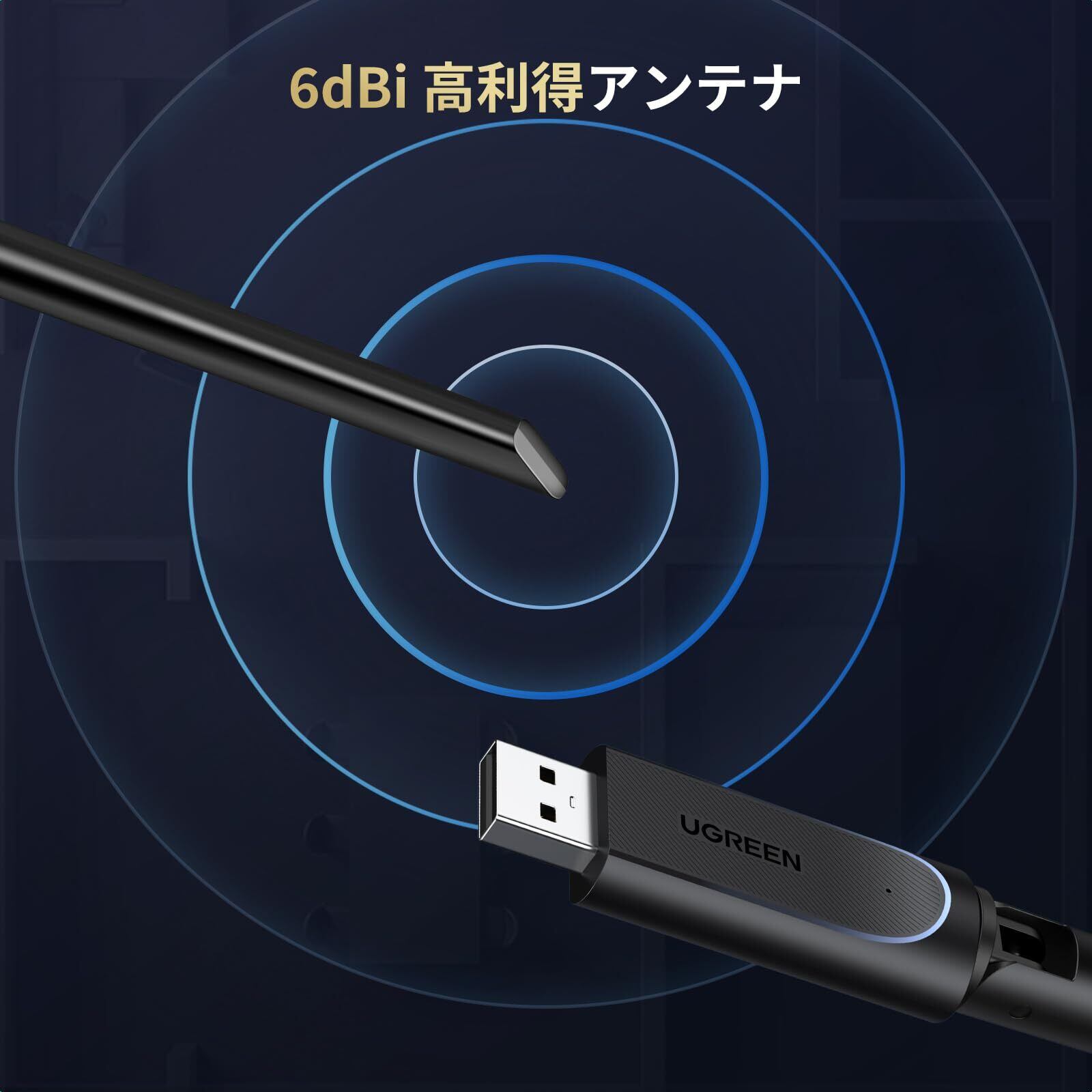 UGREEN WIFI 無線LAN 子機 WIFI 6 886Mbps 5G+2.4G 6dBi 超高速通信 デュアルバンド 180°回転ハイパワーアンテナ搭載 IEEE 802.11ax無線規格 AX900 600Mbps + 287Mbps Windows 11/10/7対応 ドライバー内蔵 WIFI 子機