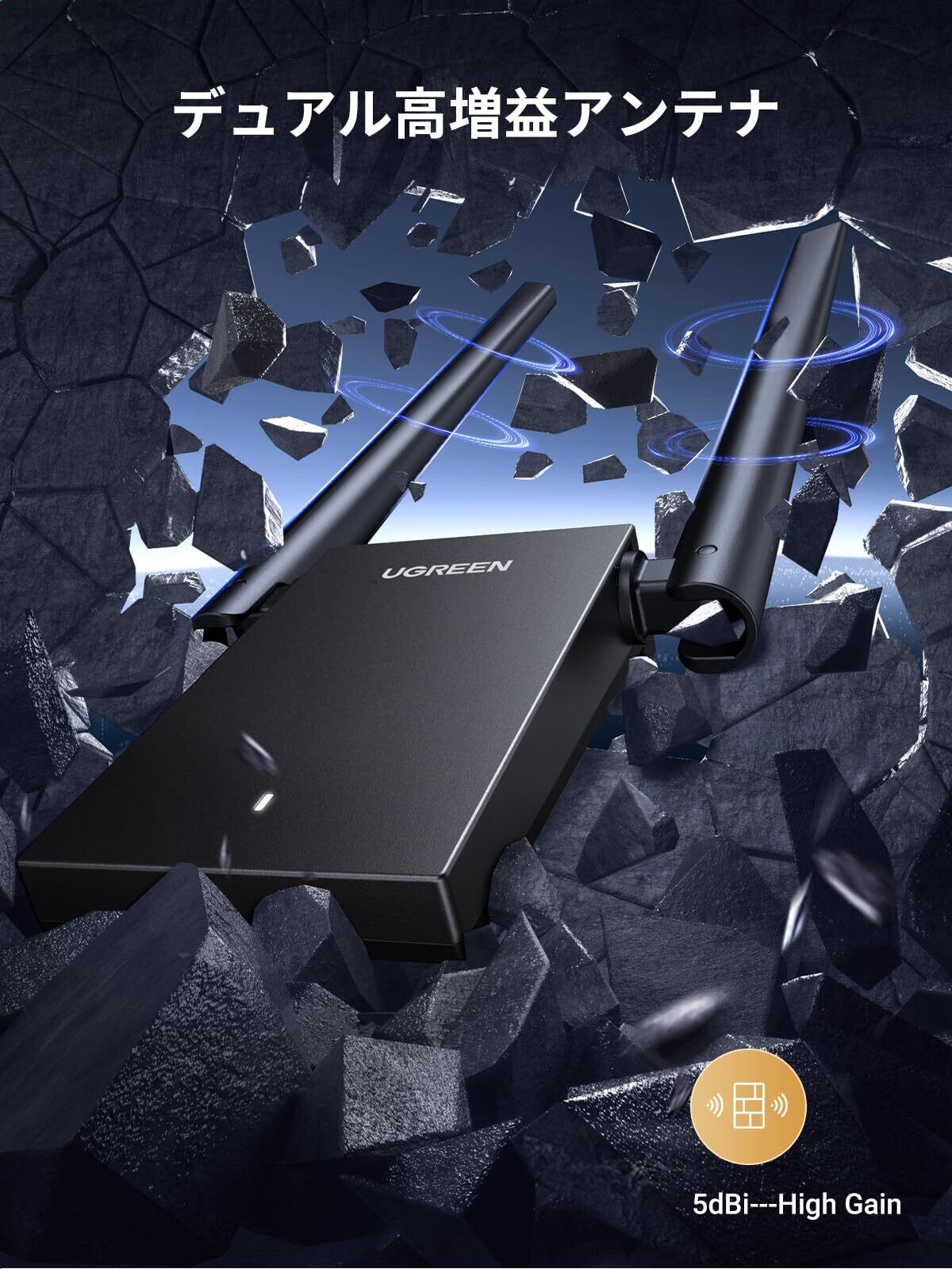 ◉【家の隅々まで電波が届く高感度アンテナ】360度全方位5dBiハイゲインアンテナを搭載しており、内蔵アンテナ製品と比較して信号伝送距離と安定性が向上して家の隅々までしっかり届きます。離れた位置のWiFiルーターの電波もキャッチし、安定した接続を維持します。