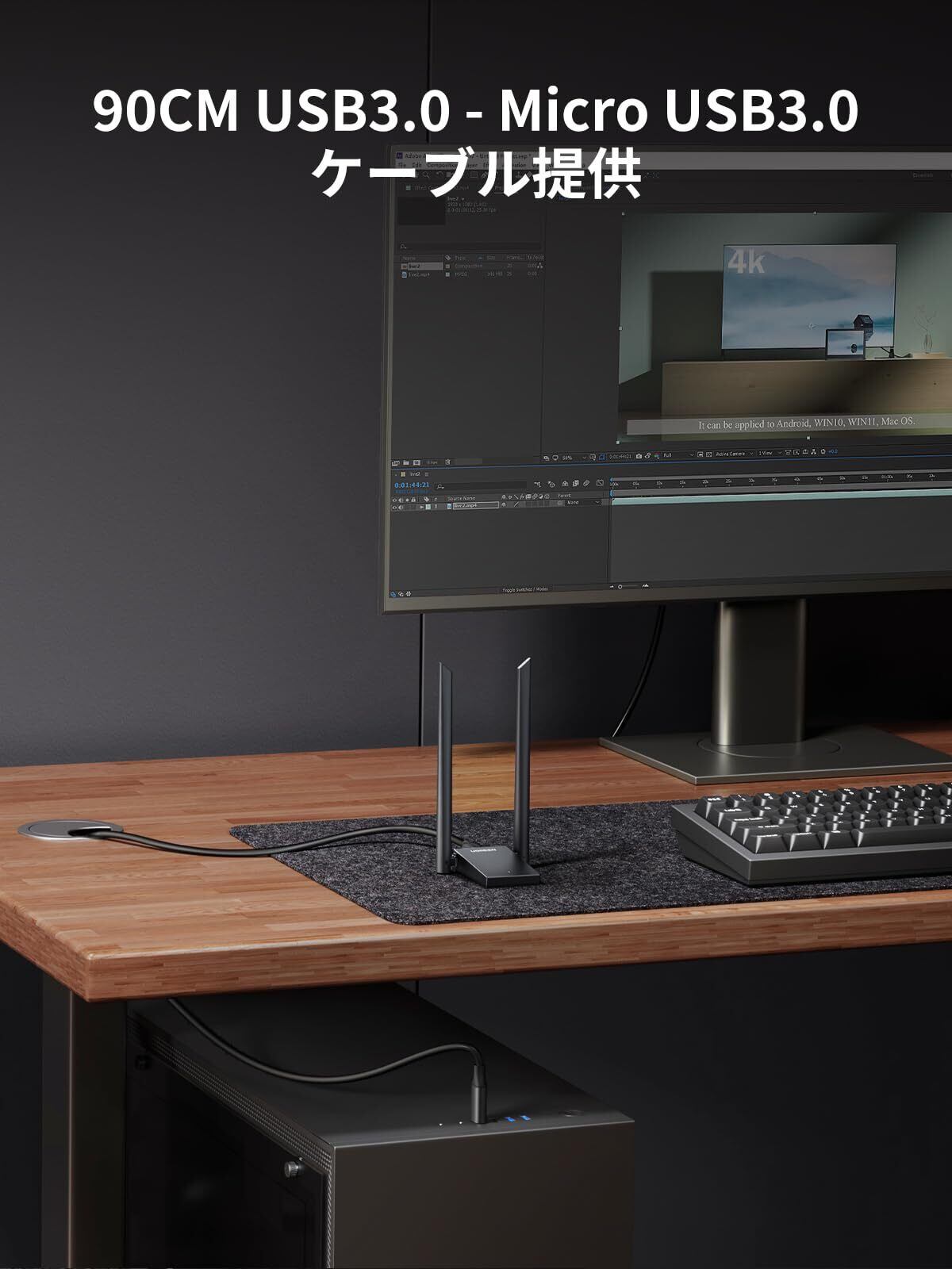 ◉【USB3.0対応・簡単接続】このWiFi 子機はUSB2.0と比較して3倍高速に接続できるUSB 3.0を採用して、ストリーミングや大容量ファイルのダウンロードもスムーズに可能。PCのUSBポートに差し込んだままでも邪魔にならなくて、使い勝手が向上!