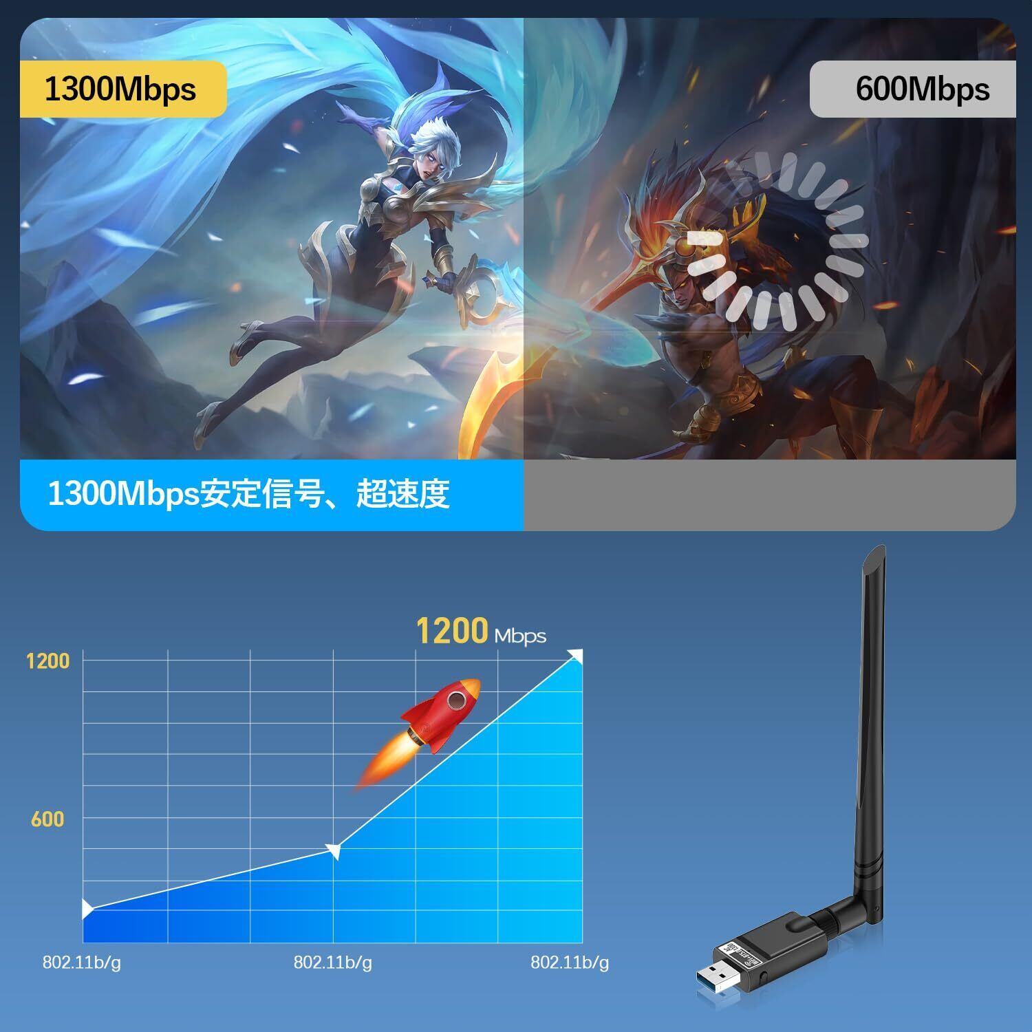 【5dBi 外部の強力なアンテナ】高ゲインの長距離5DBIデュアルバンドアンテナネットワークカードは、信号が弱い場合でも接続するのに役立ちます。無線LANの伝送性能を向上させ、各機器の安定した高速wifi接続を実現し、デスクトップPC用の理想的なUSB wifiアダプター。
