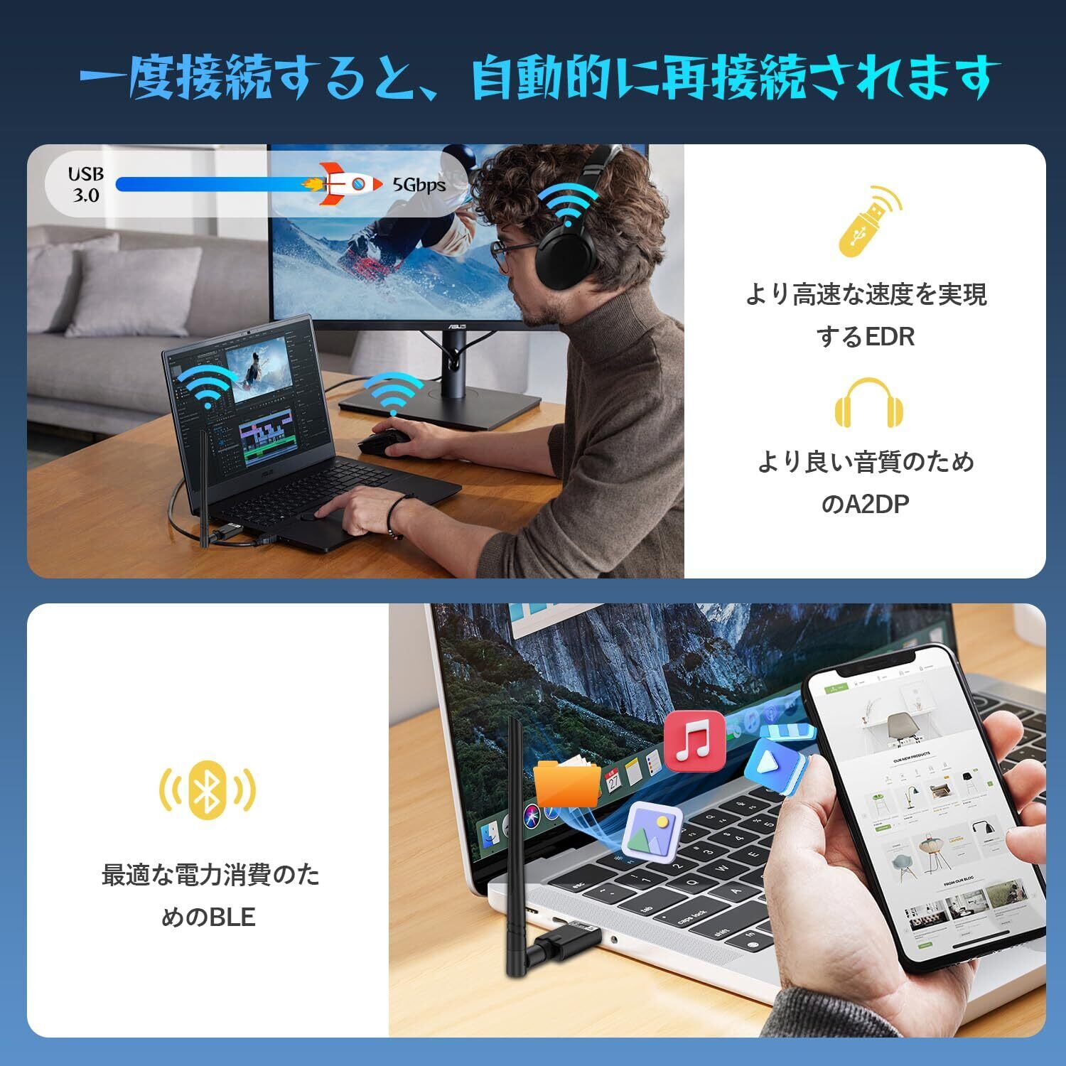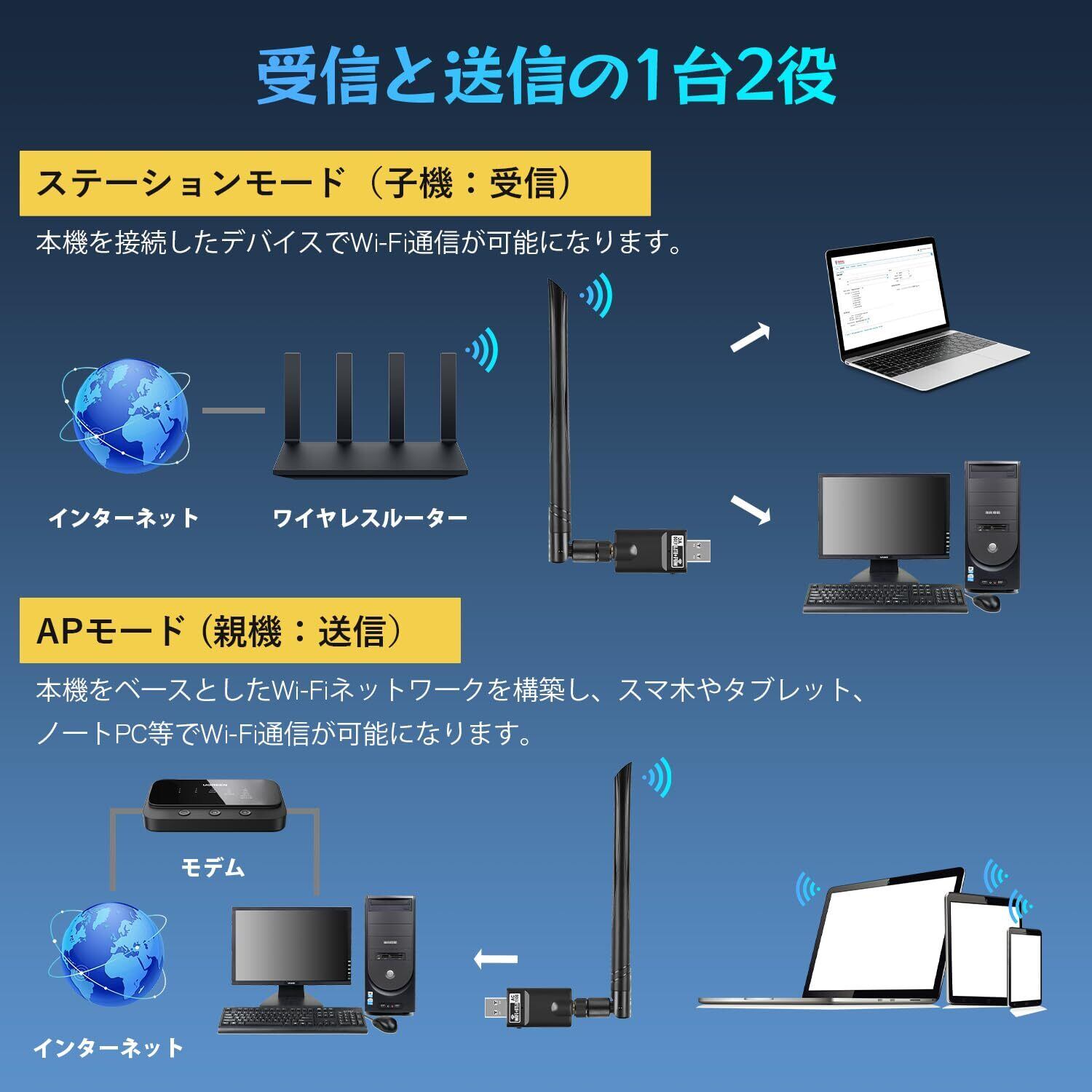 【2025無線LAN+Bluetooth】このUSB Wi-Fiアダプターは、どこにいても長距離でラグのないWi-Fi接続を提供します。WI-FIを使用しながらBluetoothを同時に使用できます。Bluetooth の通信距離は10~20M(使用環境、相手により異なる)使用できて、もっと安定性がります。
