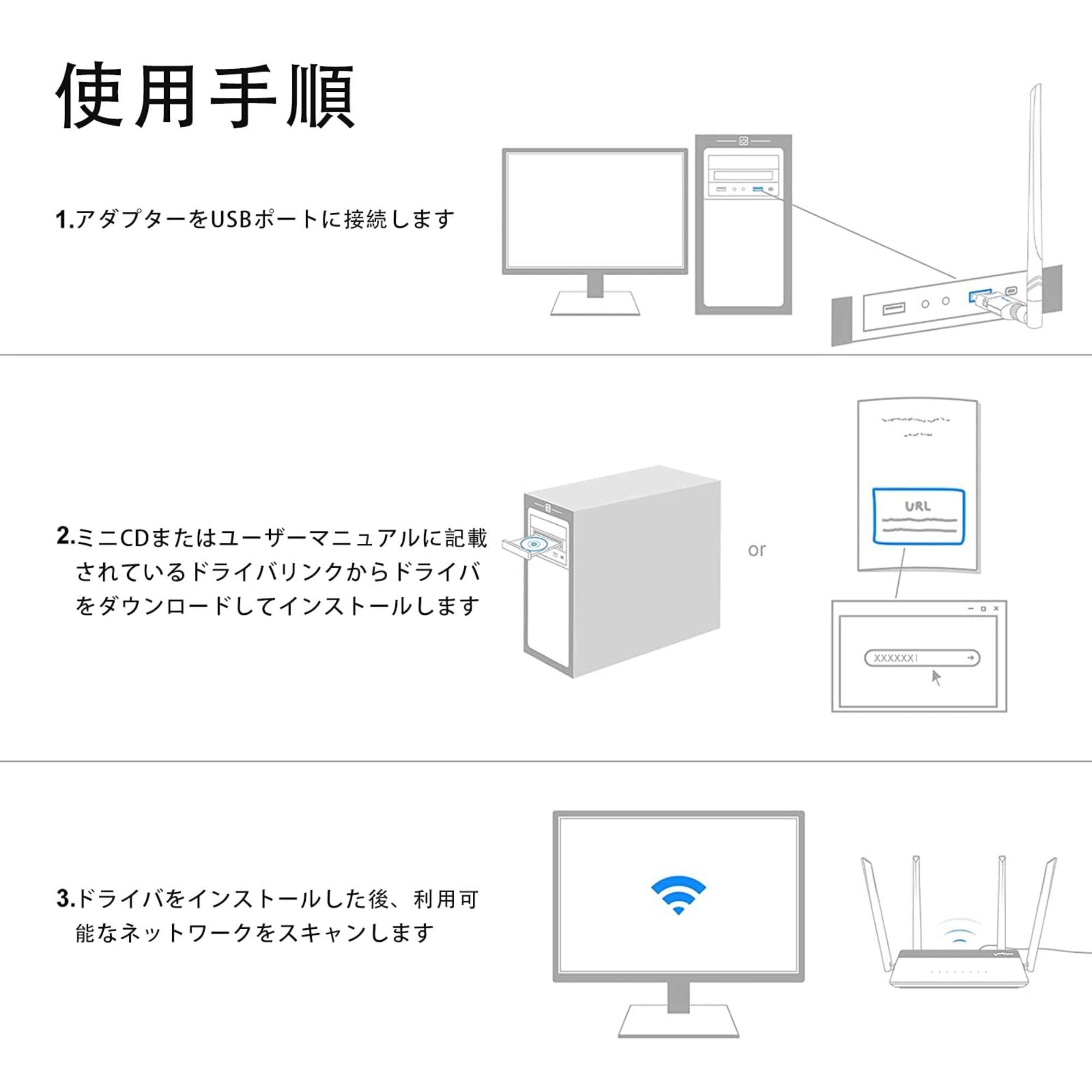 【簡単操作&セット内容】wifiアダプター付属のCDを入れて、画面の指示に従い、本製品は挿すだけでインストールが完了します。cdをお持ちでない方もご安心ください、時間内にご連絡ください。ドライバー ファイルの URL をお送りします!何か問題がございましたら、「注文履歴」→「出品者に連絡」から弊店までにご連絡ください。24時間以内対応させていだきます。 注意:【Bluetoothは使えるが、WiFiが使えなくなった方へ】Bluetoothドライバに「Realtek bluetooth 4.0 adapter」がインストールされていると、本デバイスがWi-Fiアダプター(ネットワークアダプター)として認識されなくなります。【デバイスマネージャー ⇒ Bluetooth ⇒ 上記ドライバを削除 ⇒ 本機を抜き差し】で、Wi-Fiアダプターとして再度認識されるようになりました。