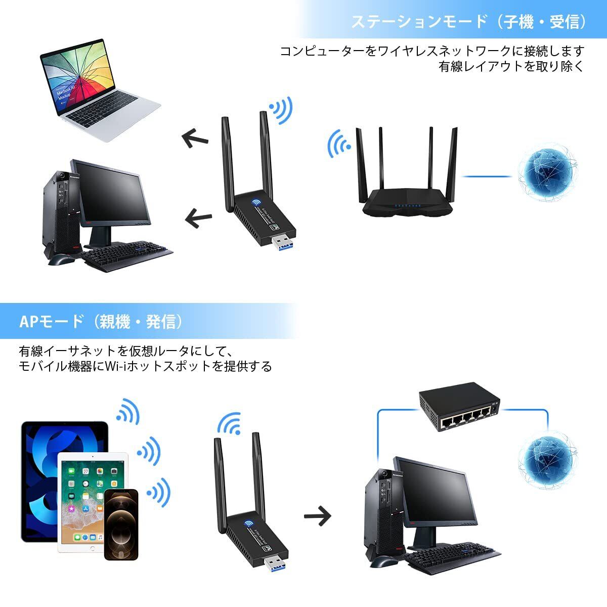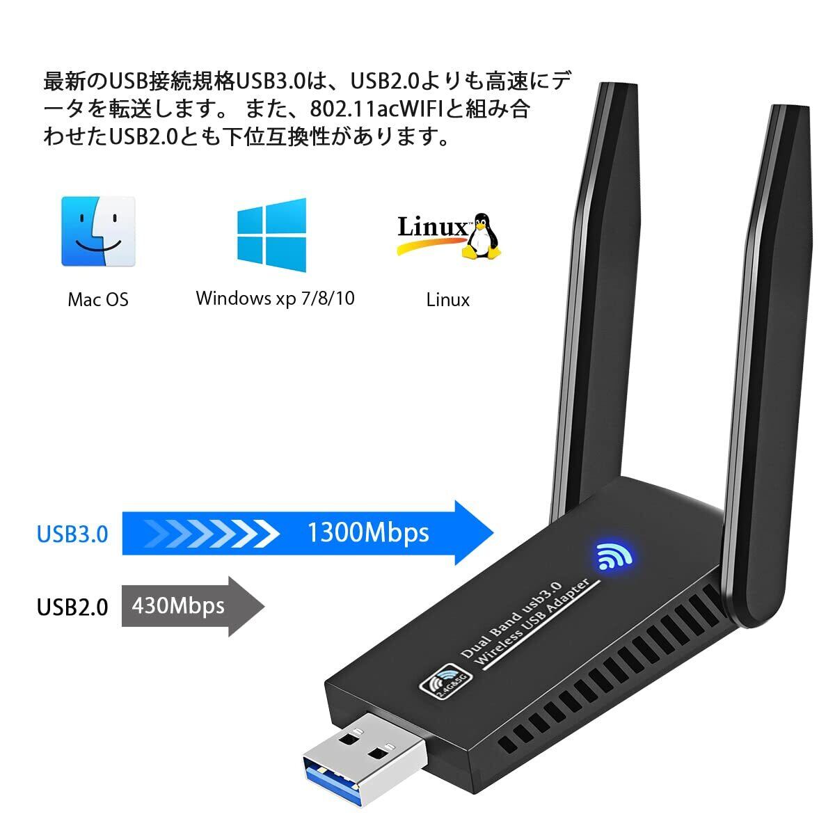 Sungale WiFi 無線LAN 子機 USB3.0 WIFIアダプター 1300Mbps 無線lanアダプタ 5dBi 2.4Ghz/5Ghz 高速通信 デュアルバンド 802.11AC Windows11/10 / 8.1/8/7/ XP/Vista/Mac OS X対応 PC/Desktop/Laptop 日本語説明書
