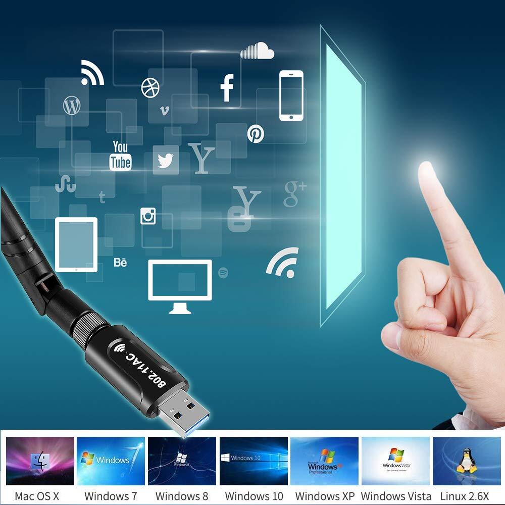 【11ac技術・ デュアルバンド】デュアルバンドで高速通信、接続デバイスが増えると通信速度が低下します。wifi usbはルーターとの距離が近く、またビデオやオンラインゲームをする場合、5Gバンドを勧めです。無線 LAN 子機はルーターとの距離が遠く、またウェブサイトをサーフィンしたい場合、2.4Gを勧めです。ご注意:ネットに接続する前に、ドライバーをインストロールが必要となります。