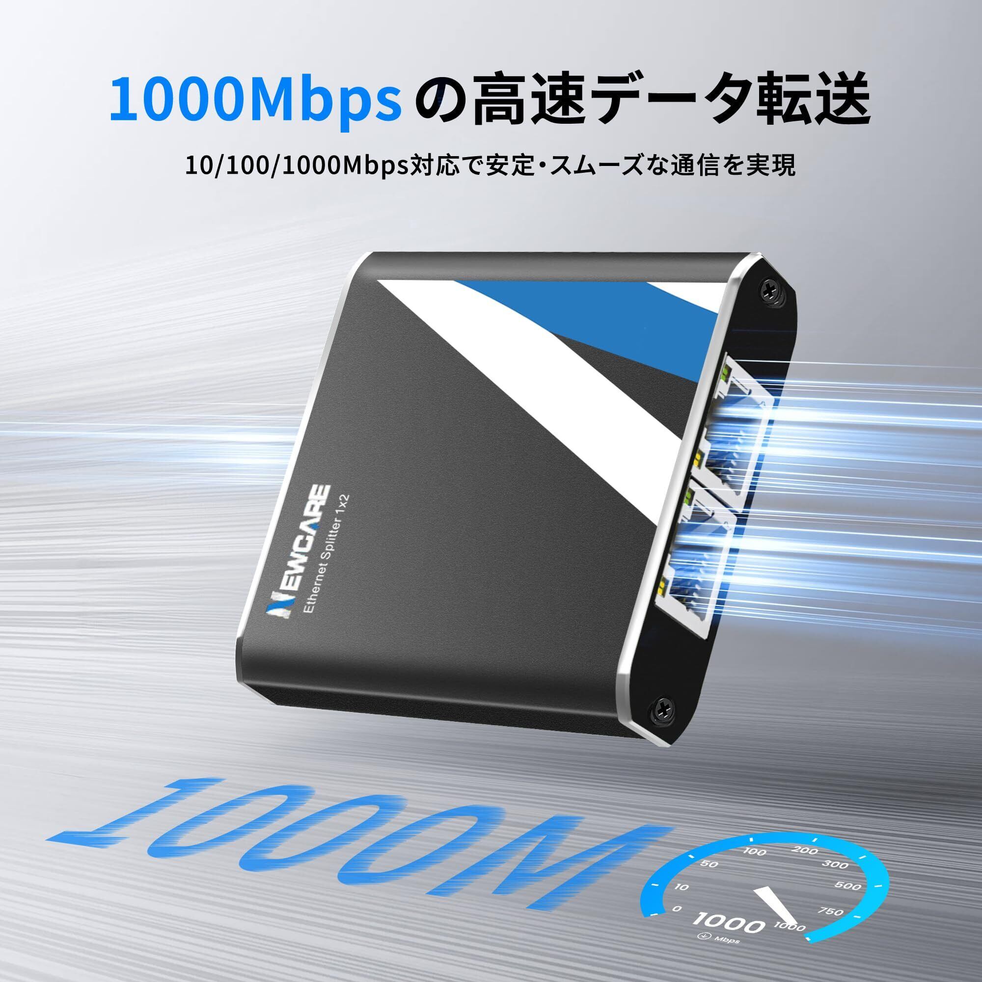 NEWCARE スイッチングハブ 3ポート ギガビットスイッチングハブ 有線lan ハブ 1入力2出力 同時通信可能 1000Mbps LANケーブル 分岐 2台同時使用 RJ45 有線LANポート増設 小型 持ち運び可 USB-C給電対応 ノートPC/ゲーム機/ルーター/テレビに対応 【1MのCat6ケーブル付属 】 アルミ製
