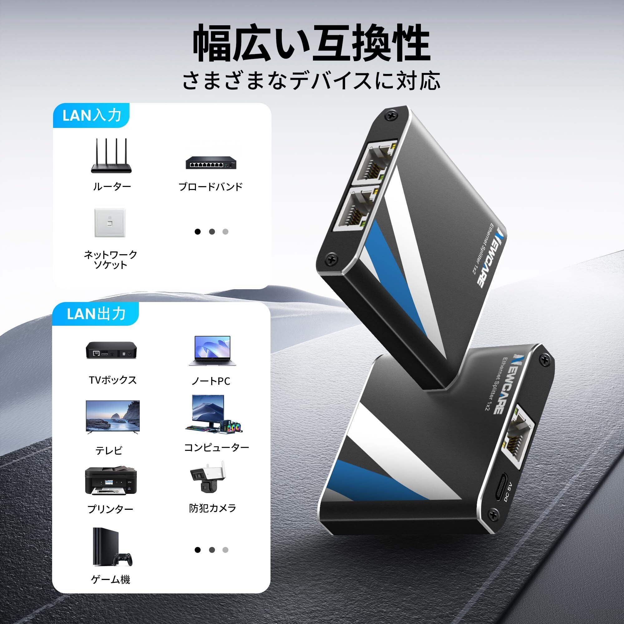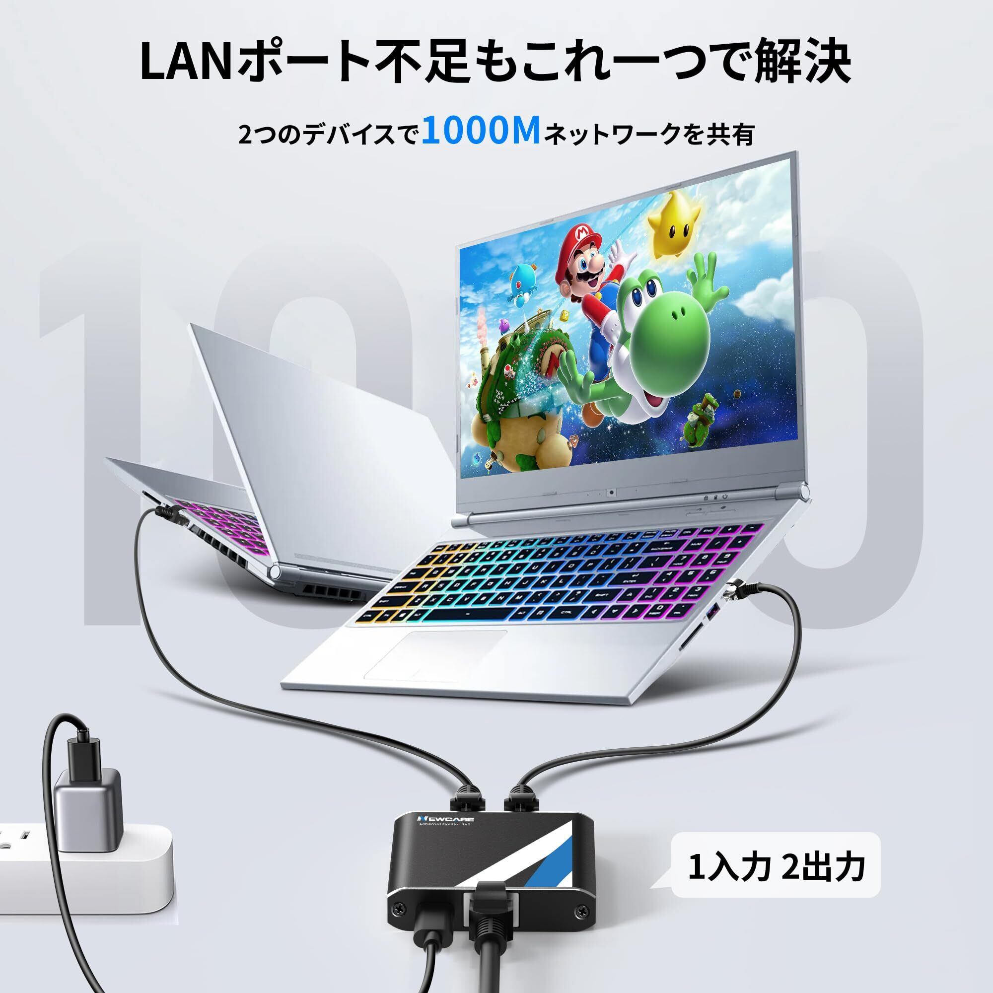 【幅広い互換性・1m LANケーブル付属】Cat5/Cat5e/Cat6/Cat7/Cat8ケーブルに対応。PC、ルーター、TV、ゲーム機など様々なデバイスに利用可能。届いてすぐ使える1m Cat6ケーブル付き。自宅のLAN分配、職場での複数PC接続、ホテルや出張先での有線LAN拡張など、多様な使用シーンで活躍。