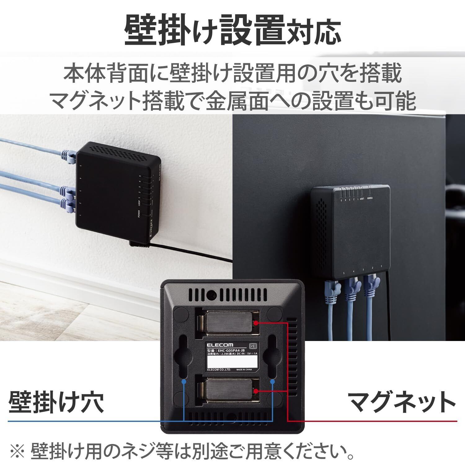 ■設置方法:水平設置、壁掛け、マグネット