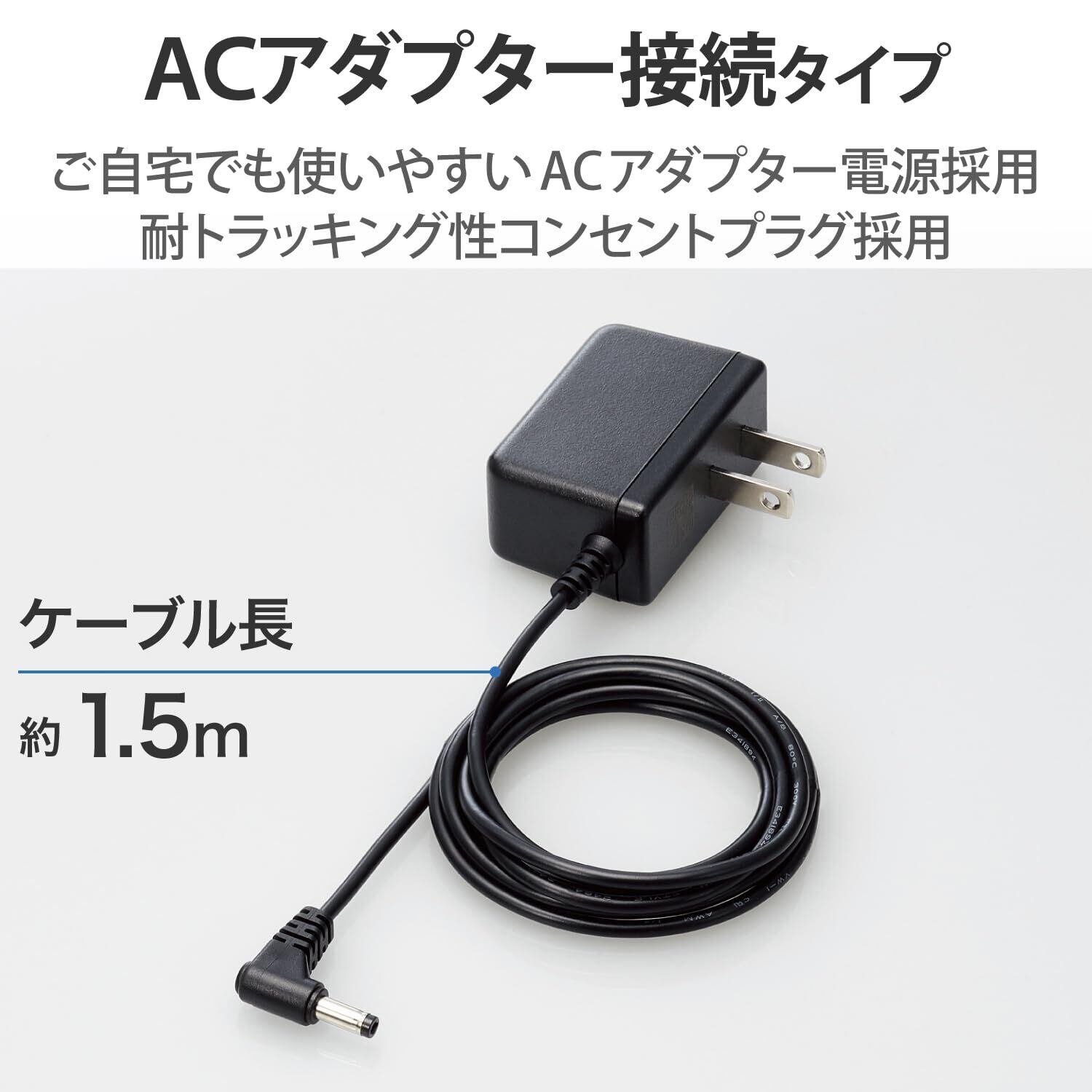 ■ACアダプターに耐トラッキング性のコンセントプラグを採用。長期間設置した場合でも、トラッキング現象を防止します。