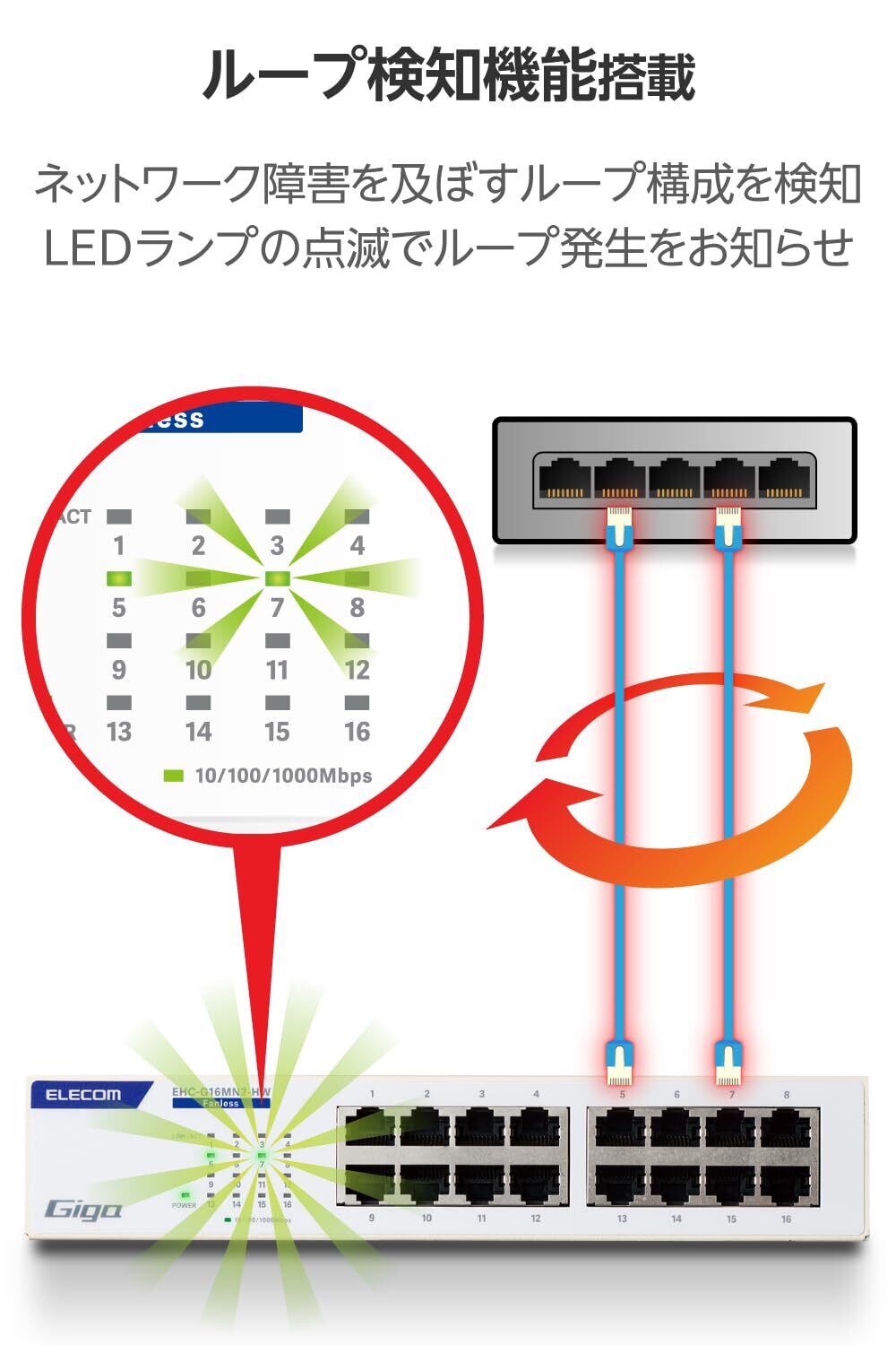 エレコム スイッチングハブ ギガビット 16ポート 電源内蔵 金属筺体 簡易パッケージ EHC-G16MN2A-HW