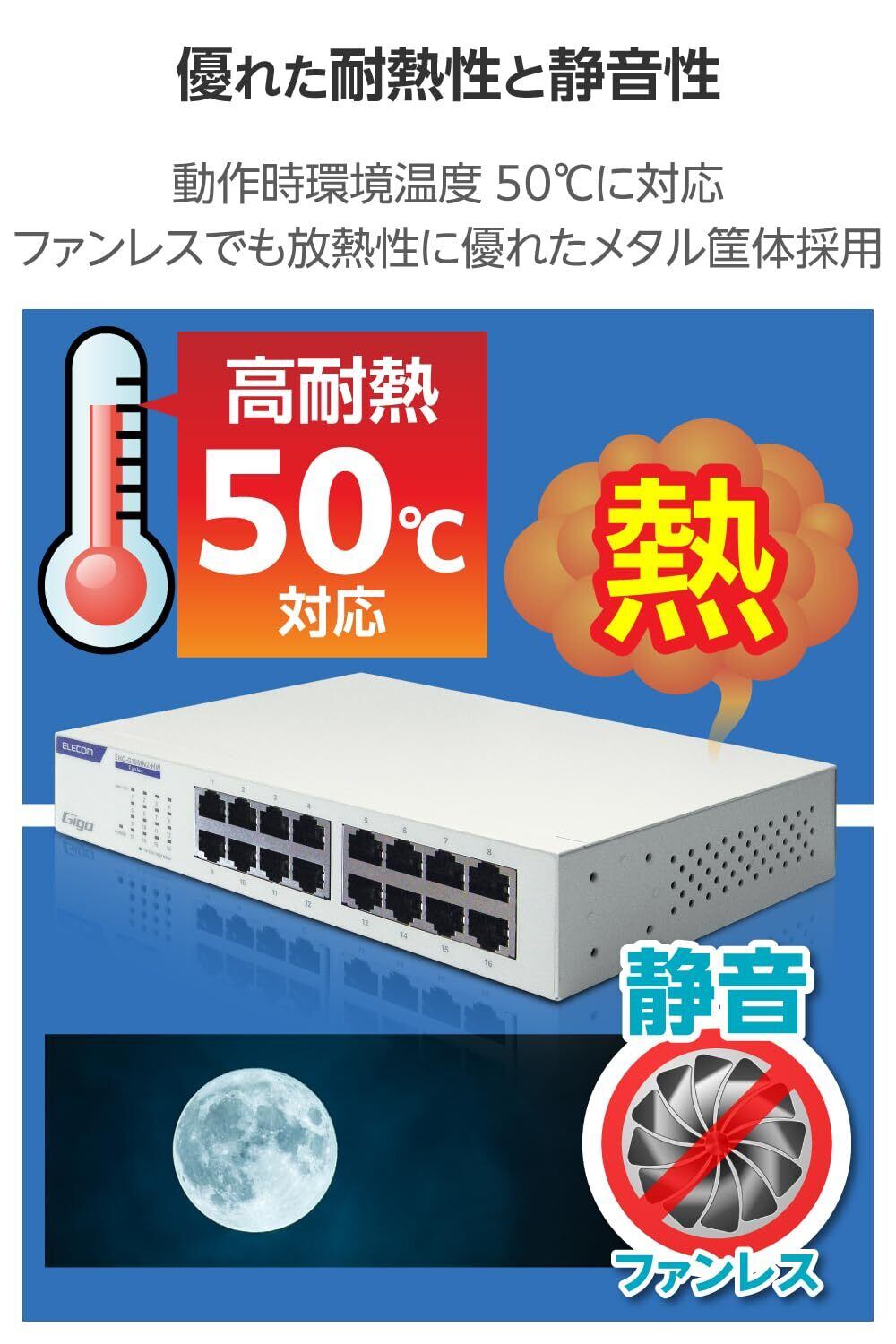 ■1000BASE-T対応の電源内蔵メタル筐体16ポートスイッチングハブです。