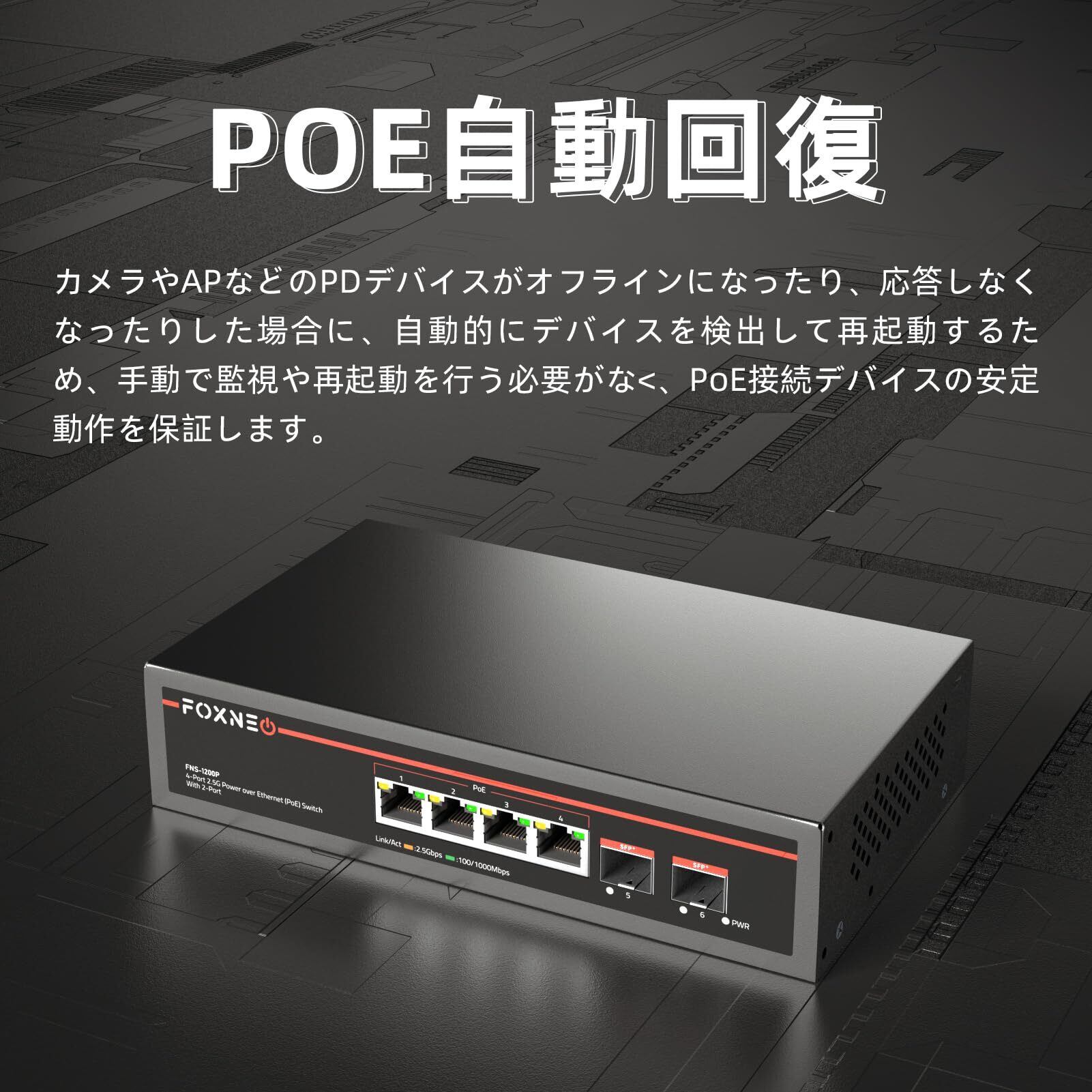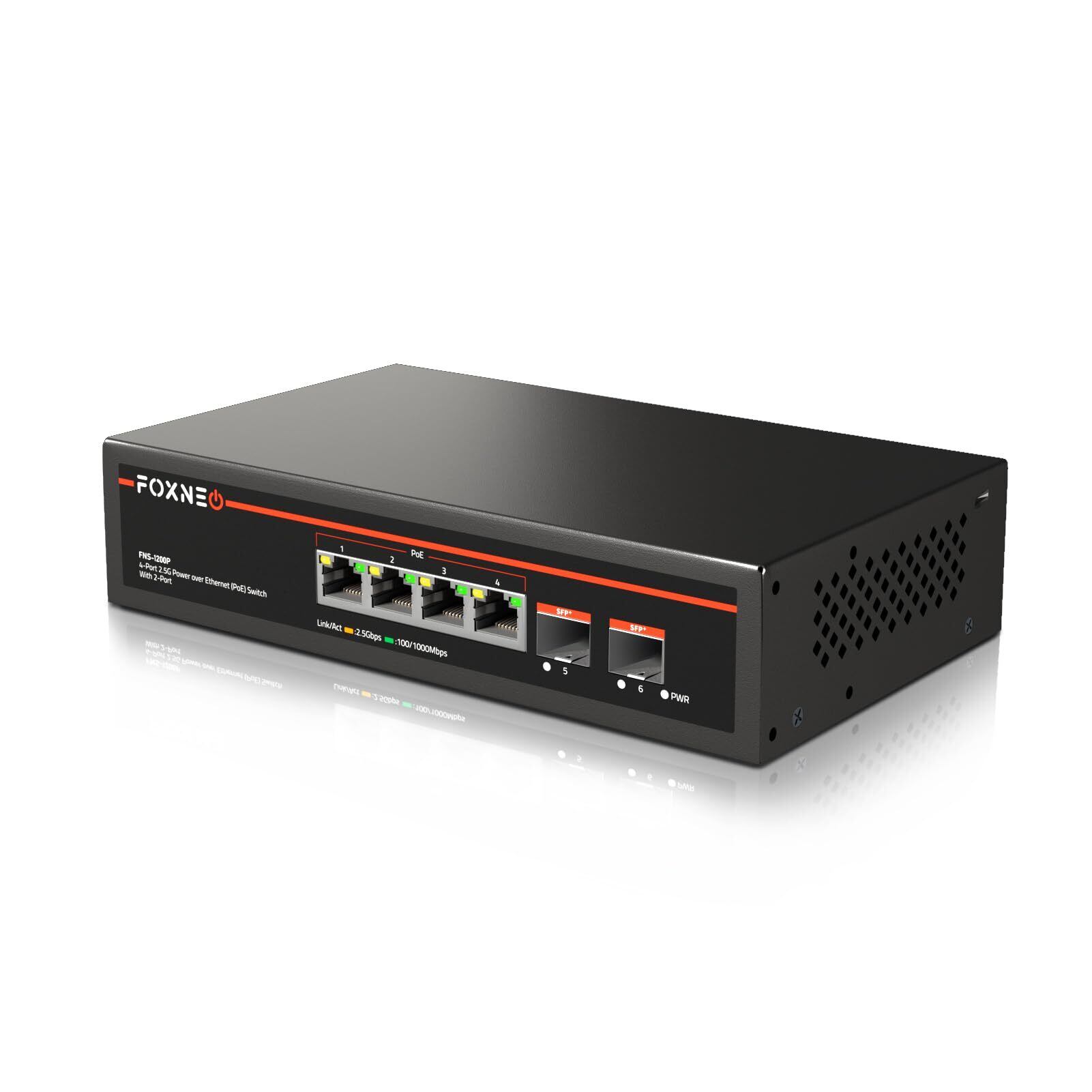 2.5gbps スイッチングハブ PoE機能搭載 6ポート(4x2.5G RJ45(PoE)と2x10G SFP+)各ポート最大30W 総合75W対応 個人や家庭向けのスイッチングハブ 静音ファンレス設計 デスクトップや壁掛け設置可能 金属筐体 プラグアンドプレイ アンマネージド スイッチングハブ
