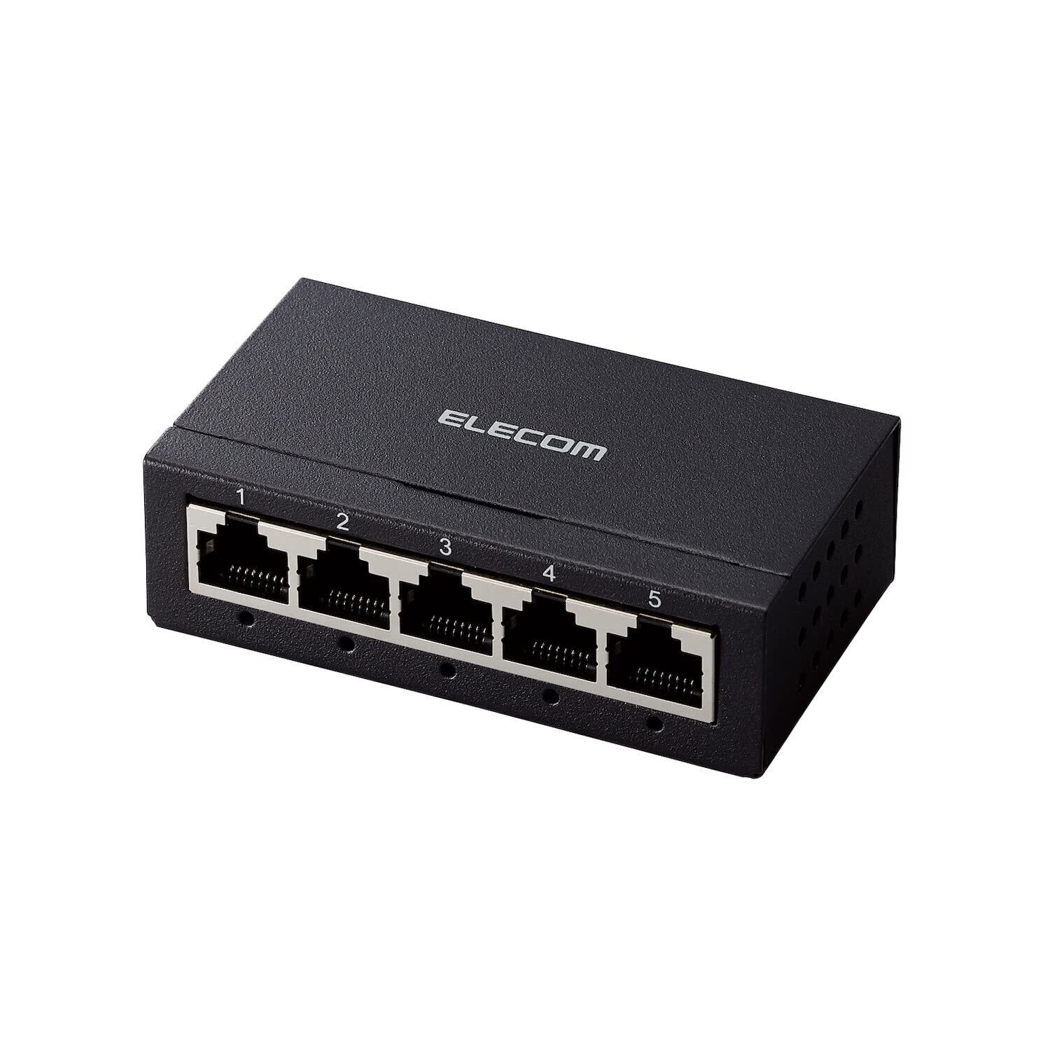 エレコム スイッチングハブ 5ポート ギガビット 金属筐体 コンパクト 軽量 [ACアダプター付属/壁掛け設置対応/静音ファンレス/省電力/EU RoHS指令準拠] ブラック EHC-G05MA-B