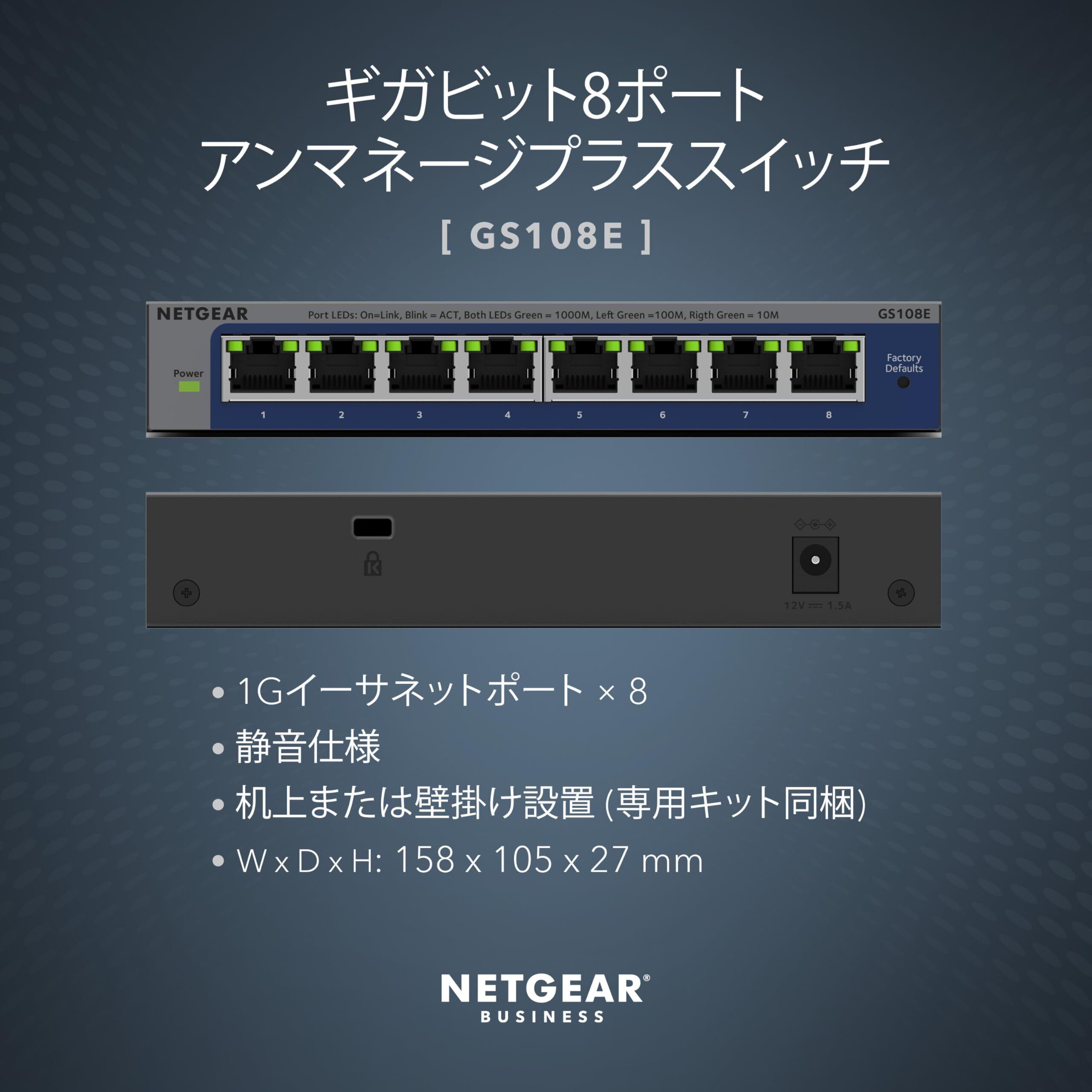 【正規品】 ネットギア NETGEAR スイッチングハブ 8ポート 1G 金属筐体 VLAN QoS 静音ファンレス リミテッドライフタイムハードウェア アンマネージプラス 法人向け GS108E-400JPS