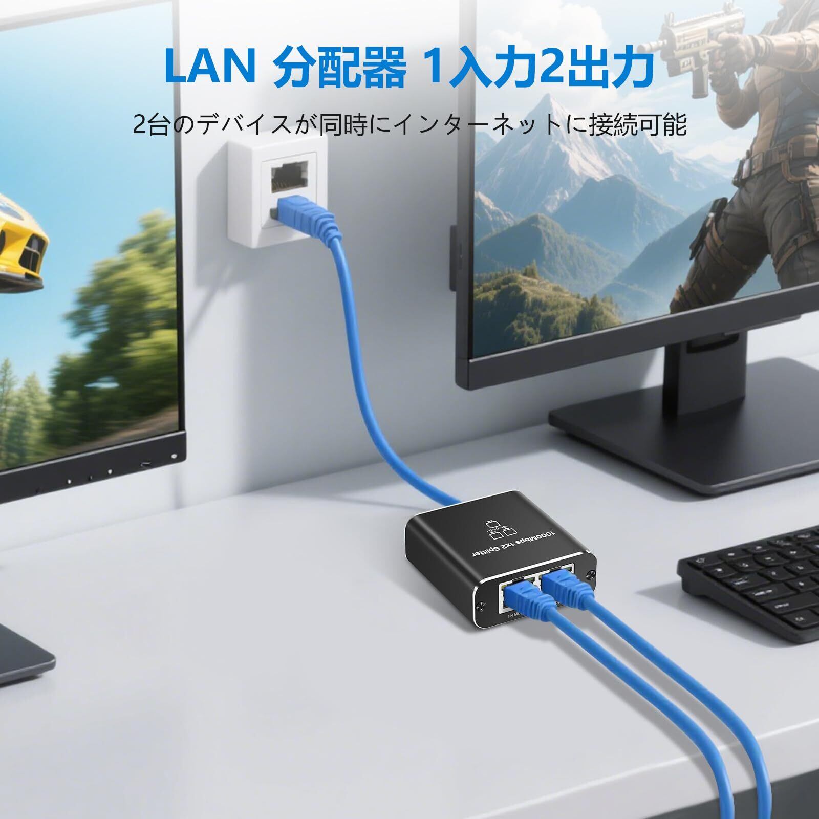 Aideepen LAN ハブ LAN分配器 3ポート 1入力2出力 RJ45 高速1000Mbps スイッチングハブLANケーブル LANケーブル 分岐 2台同時使用 lan スプリッターCat8/Cat7/Cat6対応 ネットワーク拡張 ブラック