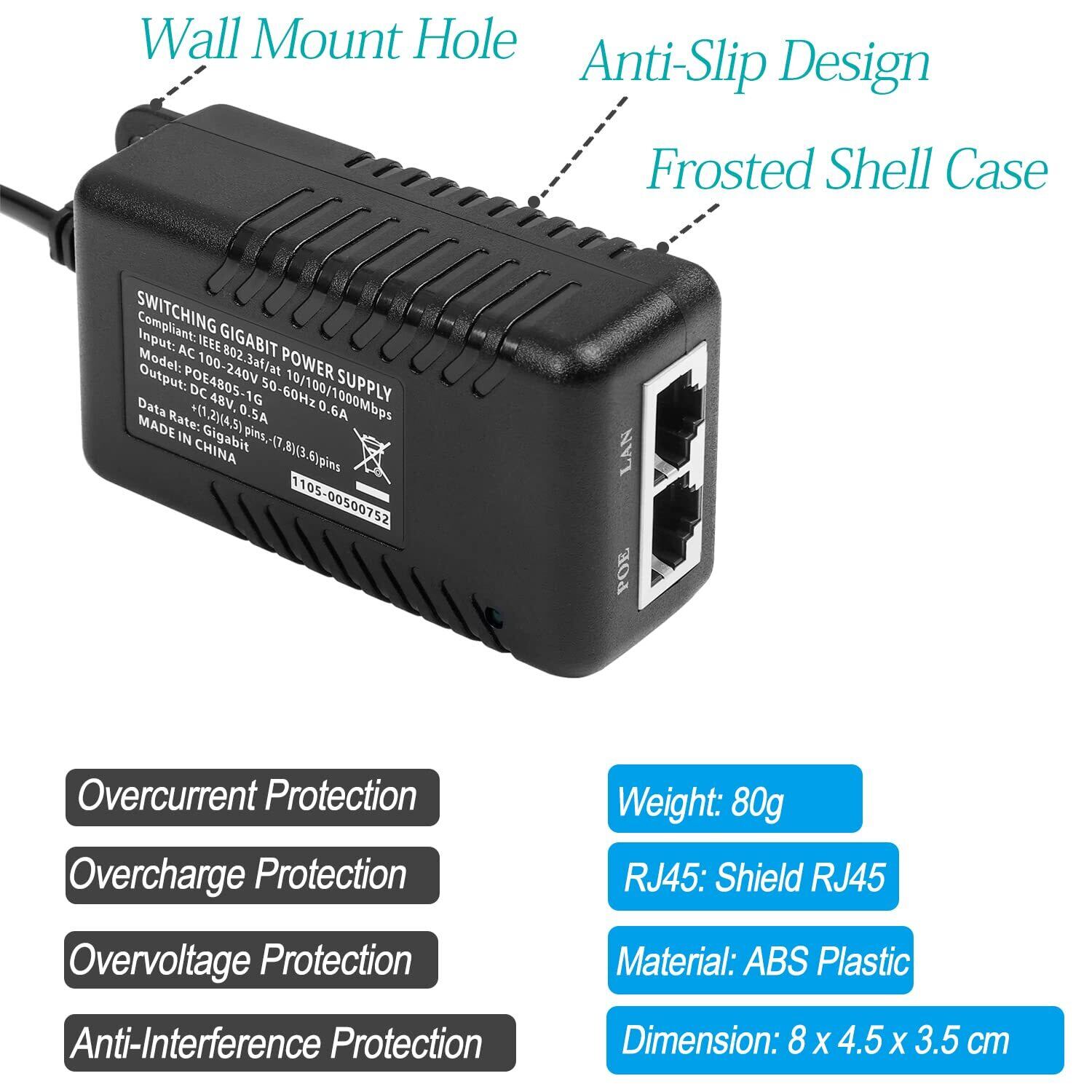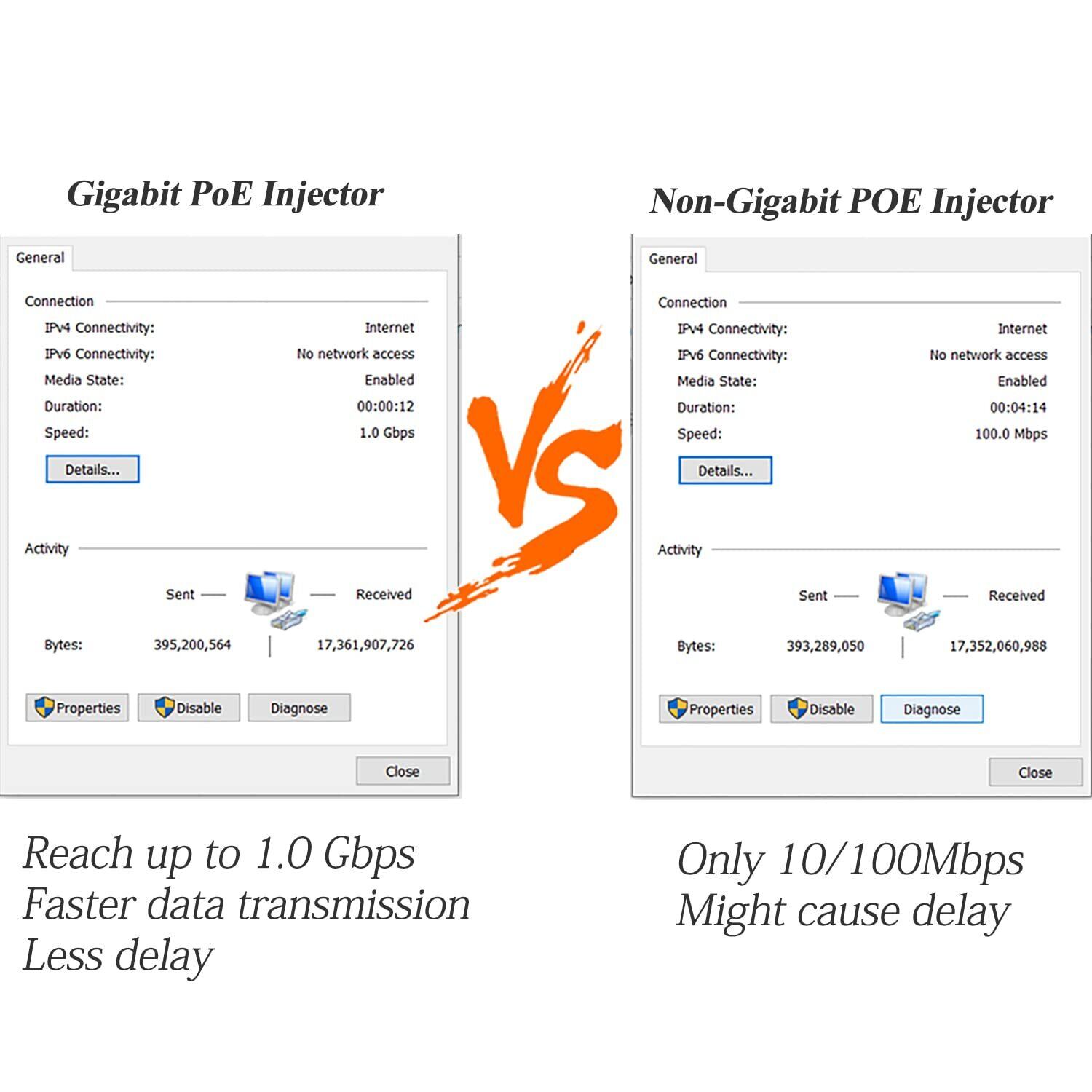 【ギガビット 1000Mbps】ほとんどの 100Mbps PoE インジェクターとは異なり、このギガビット PoE インジェクターは 10/100/1000Mbps の速度、最大 125MB/s をサポートします。 より高速なデータ伝送、より少ない遅延。