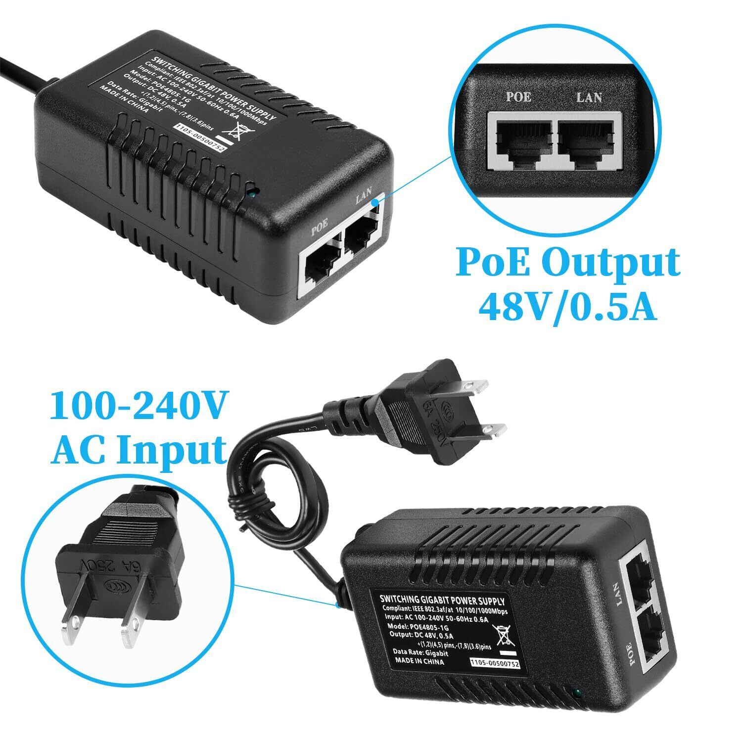 48V ギガビット パッシブ PoE インジェクター、PoE 48V/0.5A 出力、US ケーブル付き、10/100/1000Mbps、最大距離 100m、プラグアンドプレイ PoE アダプター (POE4805-G)