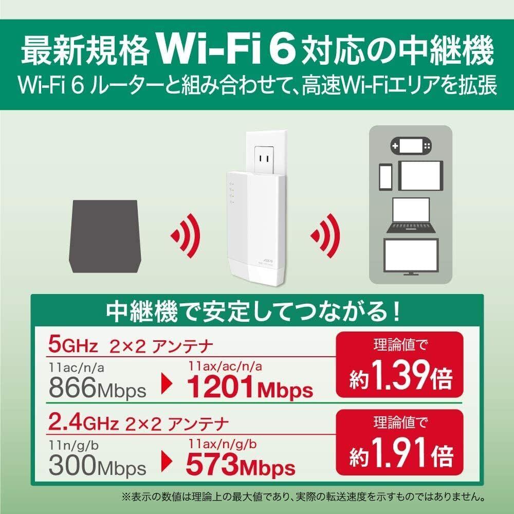 バッファロー WiFi 無線LAN 中継機 Wi-Fi6 11ax / 11ac 1201+573Mbps Easy Mesh 対応 コンセント直挿し 日本メーカー【 iPhone15 / 14 / 13 / SE (第三世代) / Nintendo Switch メーカー動作確認済み】 エコパッケージ WEX-1800AX4/N