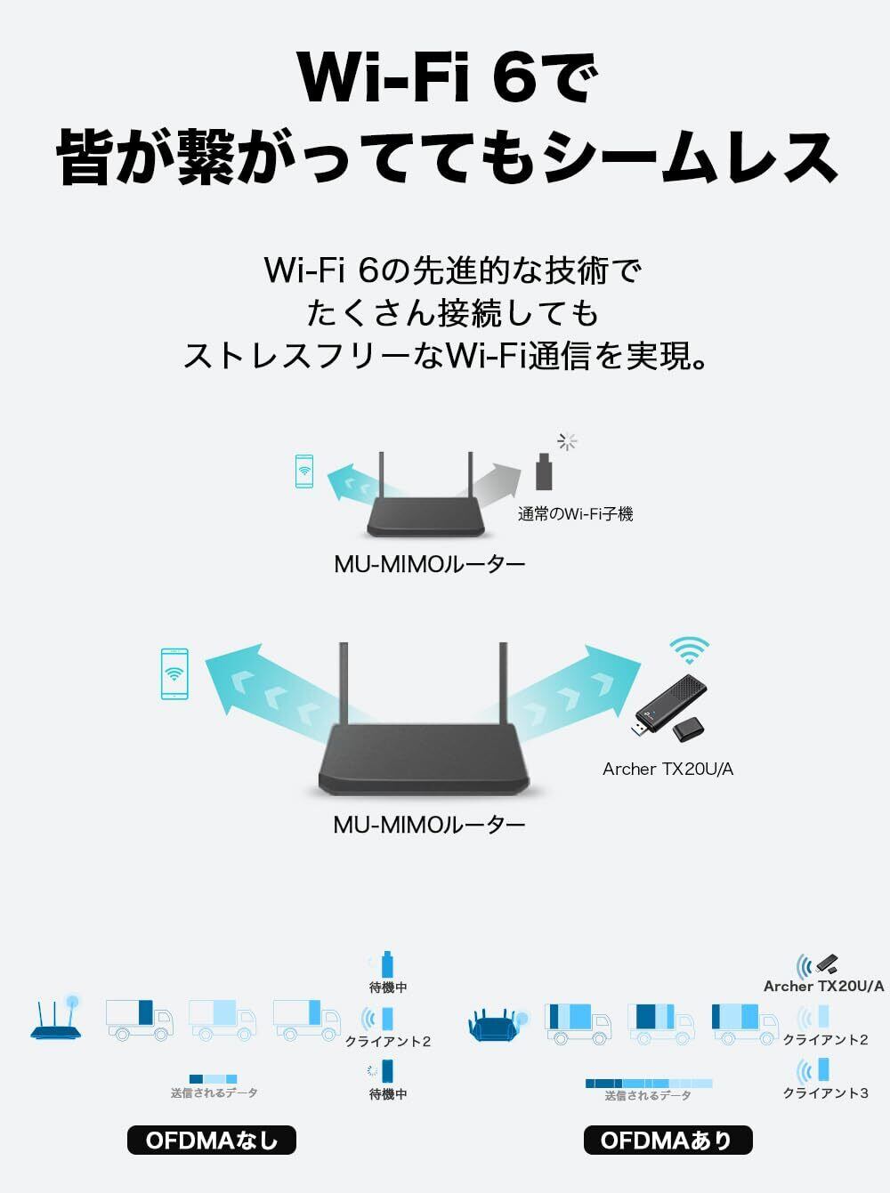 【特徴】WiFi 6 対応 AX1800規格 USB3.0対応無線LAN子機 Archer TX20U/A