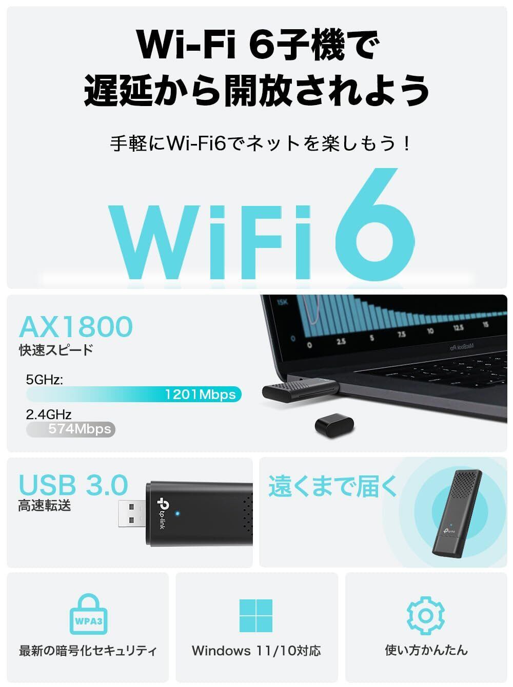 TP-Link WiFi 無線LAN 子機 AX1800 wifi6 1201Mbps + 574Mbps デュアルバンド OFDMA MU-MIMO WPA3 USB3.0 Windows 11/10 Archer TX20U/A