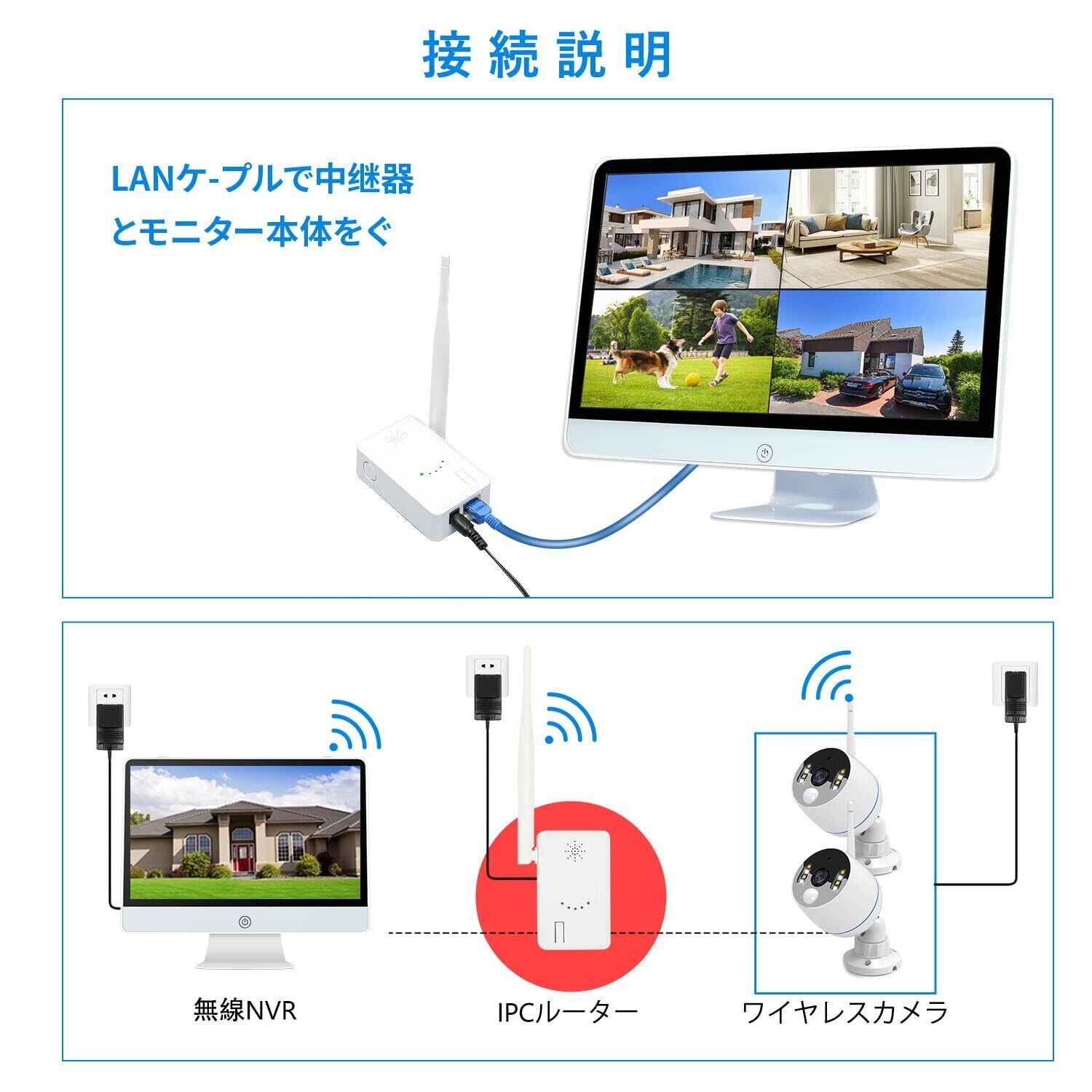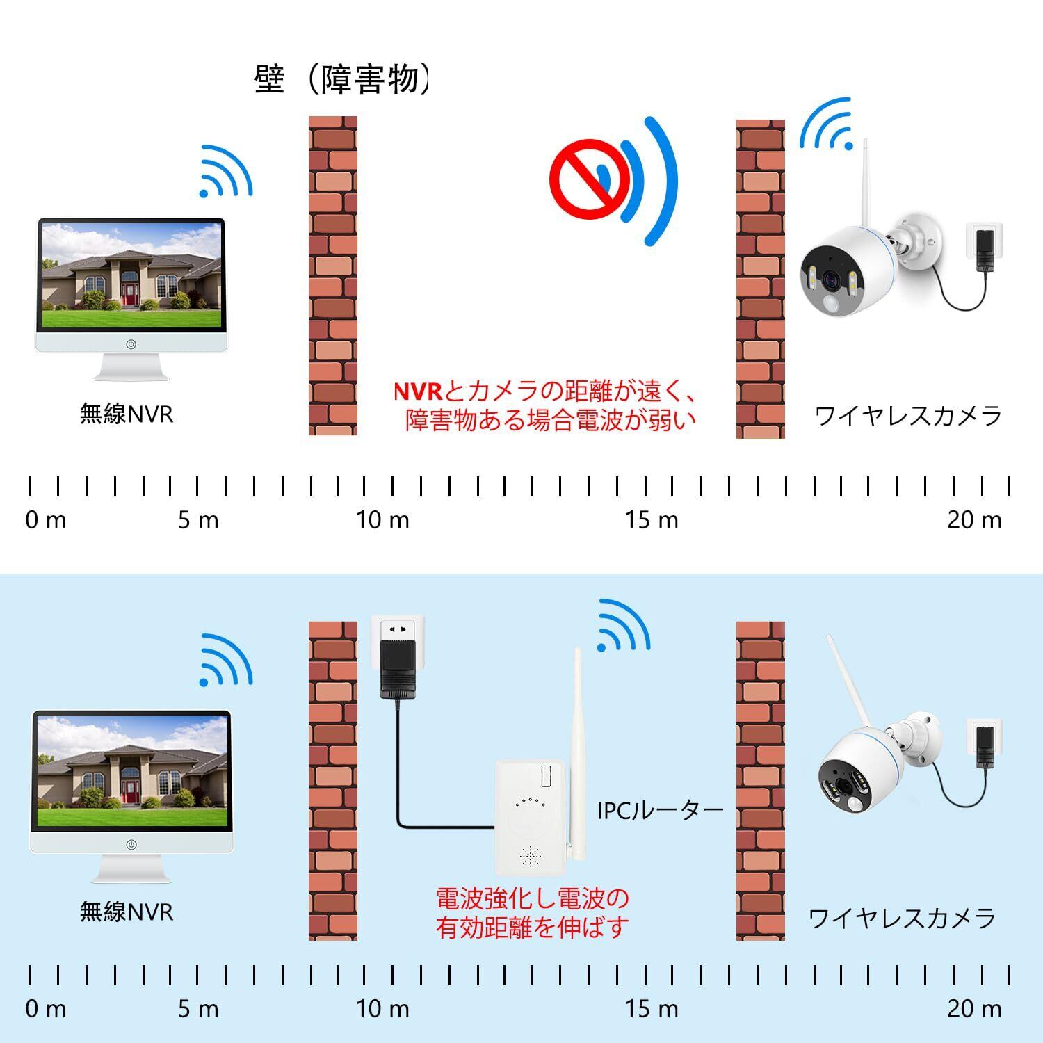 YESKAMOO 中継器 ワイヤレス防犯カメラセットとテストして、YESKAMO ワイヤレス防犯カメラセットに適用するそうです。他社の防犯キットに対応しない可能性があります。IPカメラ単品に適用しないそうです。
