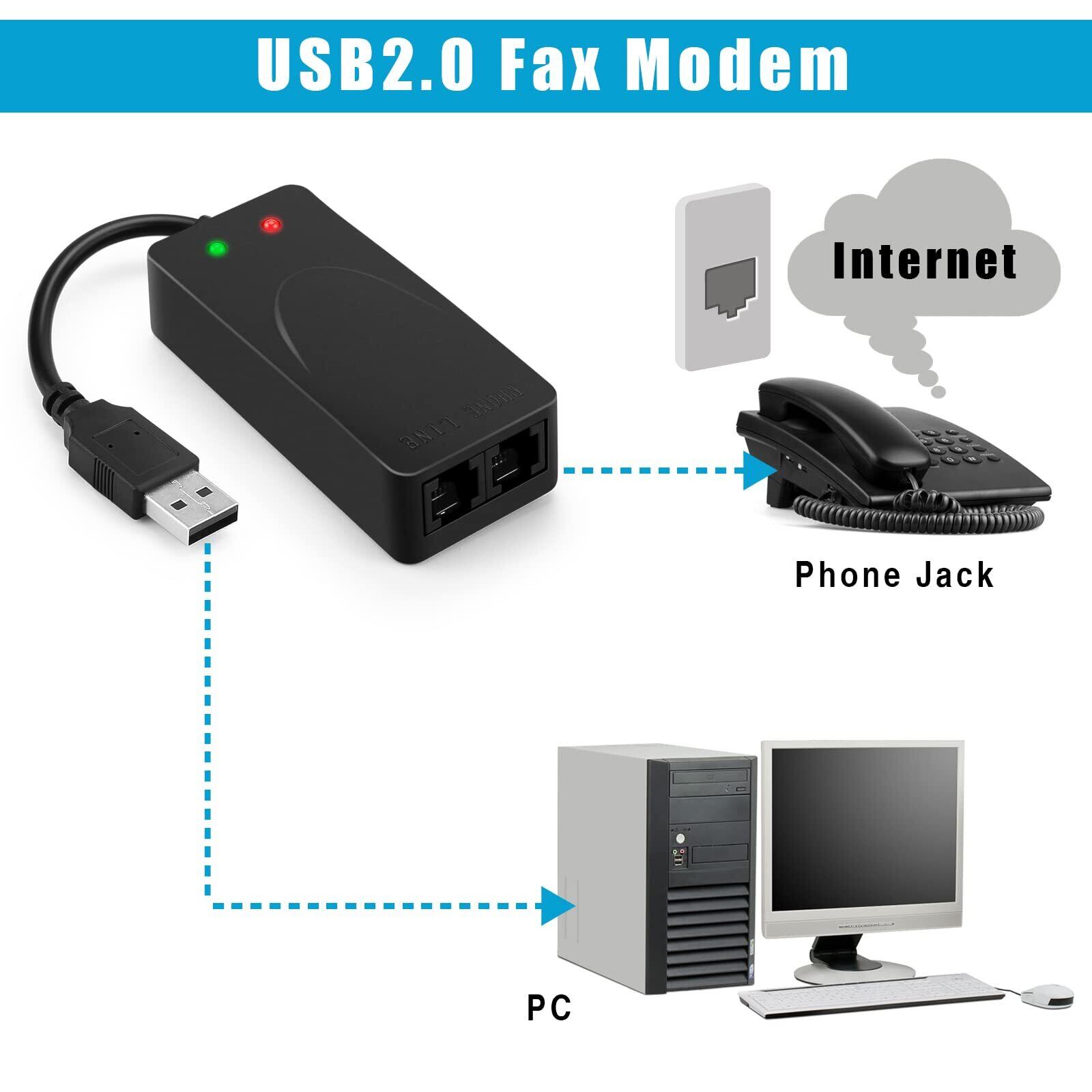 AGPtek External USB2.0 FAX MODEMファックスモデム faxモデム アナログ デュアルポート【IN/OUT端子付き】56K V.92 V.90 CX93010 win7RJ11