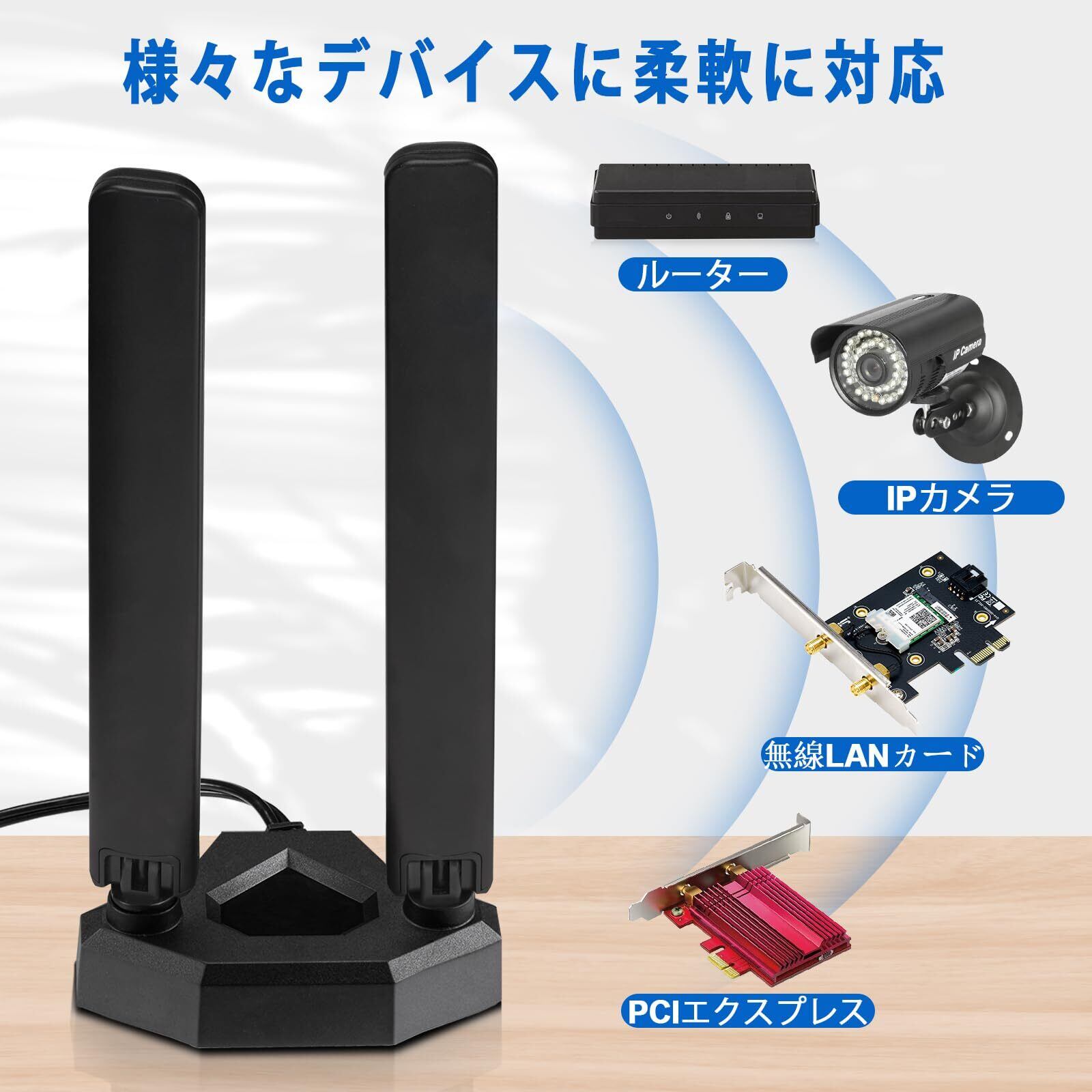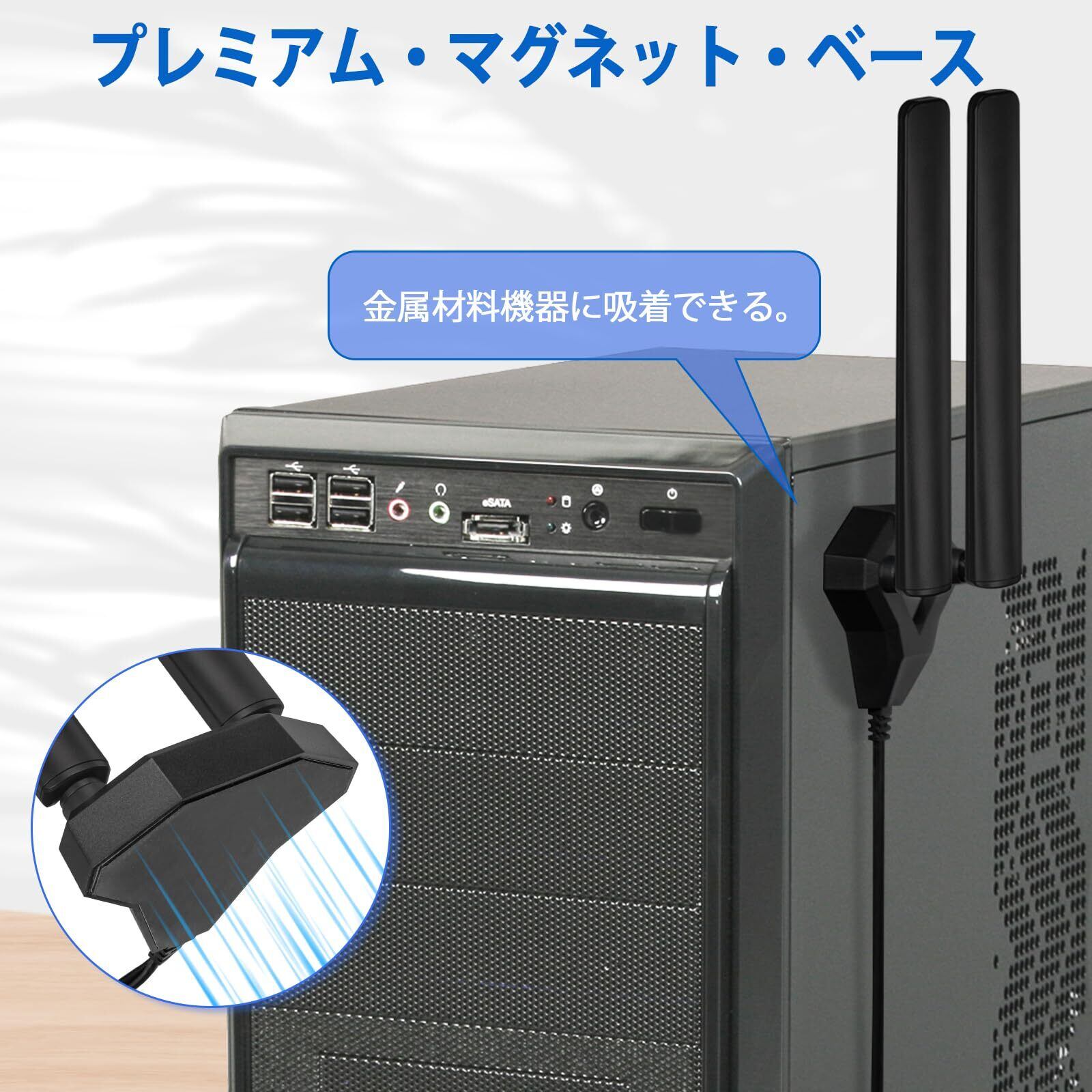 BINGFU WiFi 6E トライバンド アンテナ 6GHz 5GHz 2.4GHz ゲーム WiFi アンテナ磁気ベース 2M 延長ケーブル PC デスクトップ PCIe WiFi 6E カード、WiFi ルーター用