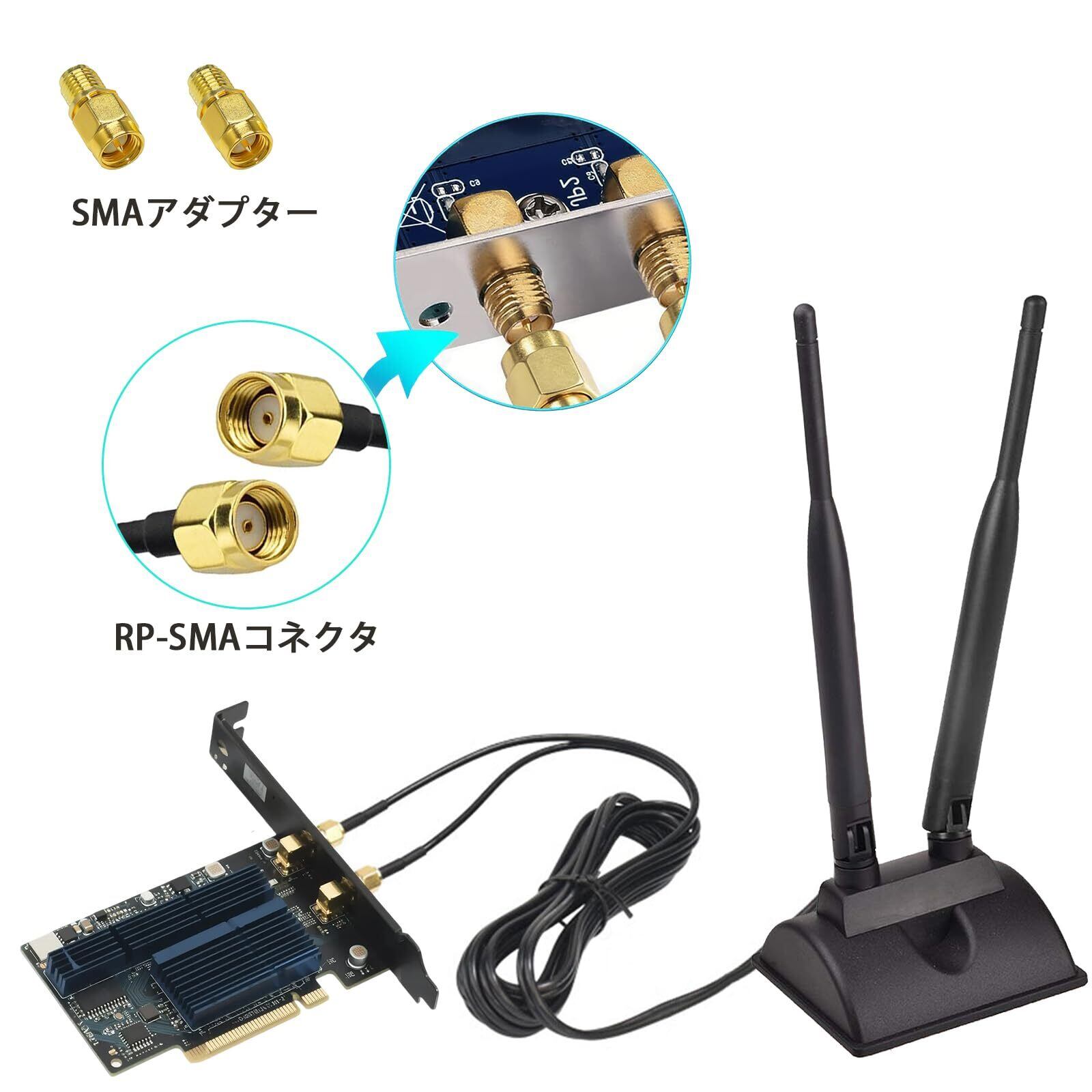 パッケージにはデュアルWiFiアンテナ x 1、RP-SMAアダプタ x 2が含まれます。