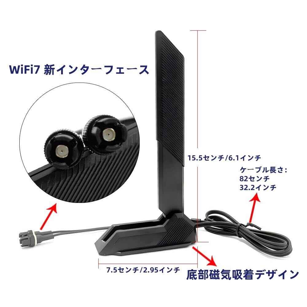 W-iFi アンテナ WiFi 7 WiFi 6 6E アンテナ802.11BE 2.4GHz/5GHz/6GHzトライバンドBluetooth5.4 WiFiルーター Tri-band ASUS 用 Gigabyte 用 320MHz ゲーミングマザーボード- wifi7 PC 拡張可能ルーター-磁気ベース延長ケーブル付き (黒)