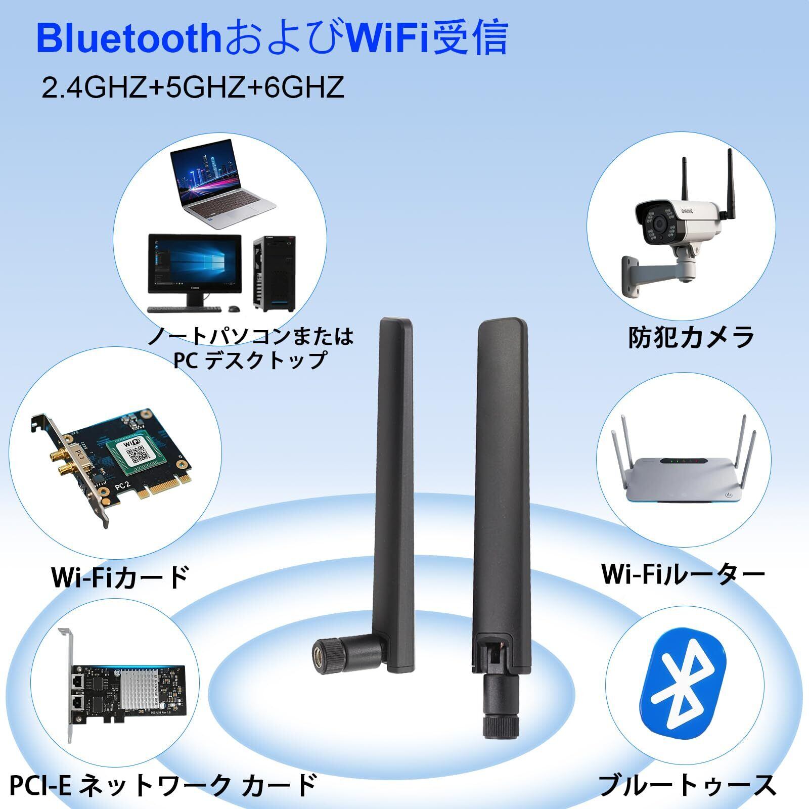WiFi 6E アンテナ デュアルバンド 2.4GHz 5GHz 5.8GHz 12dBi MIMO RP-SMA コネクタ アンテナ WiFi WLAN ルーター ワイヤレス ネットワーク カード USB アダプター セキュリティ IP カメラ ビデオ監視モニター Bluetooth アンテナ用